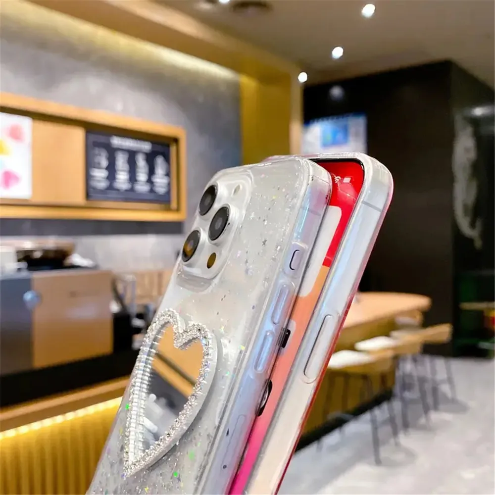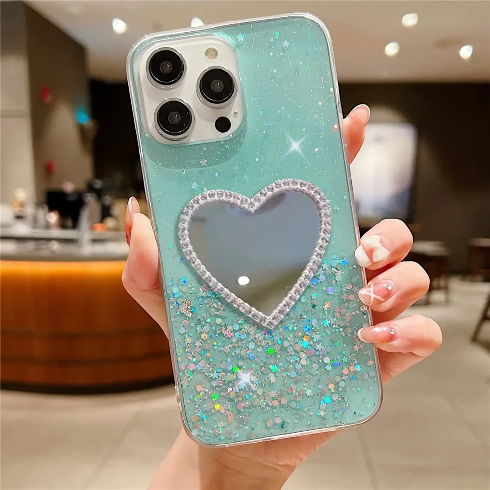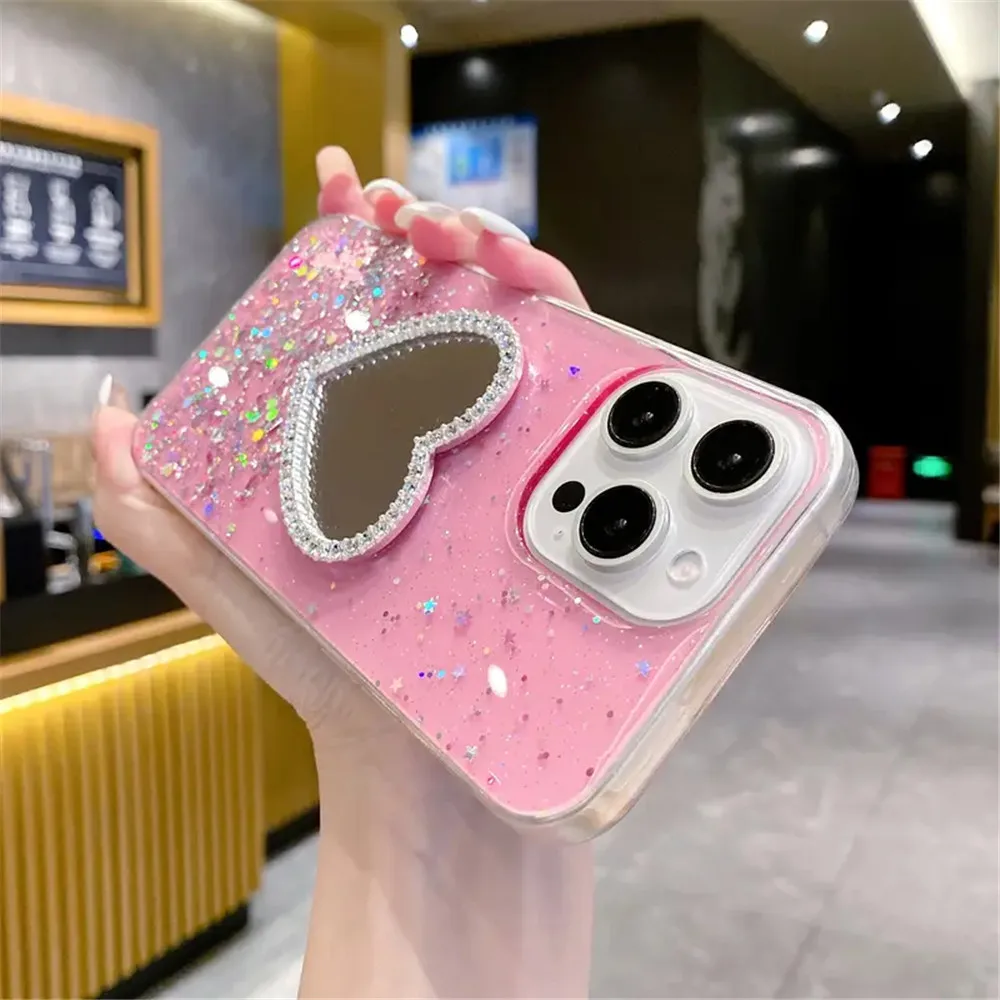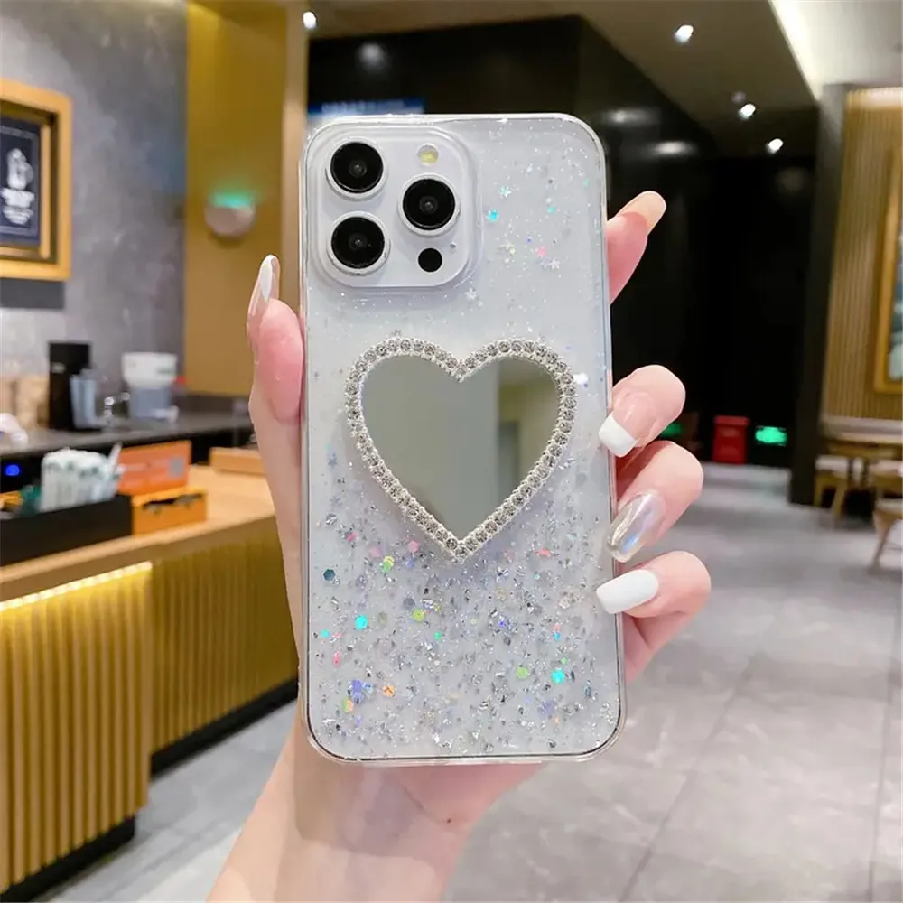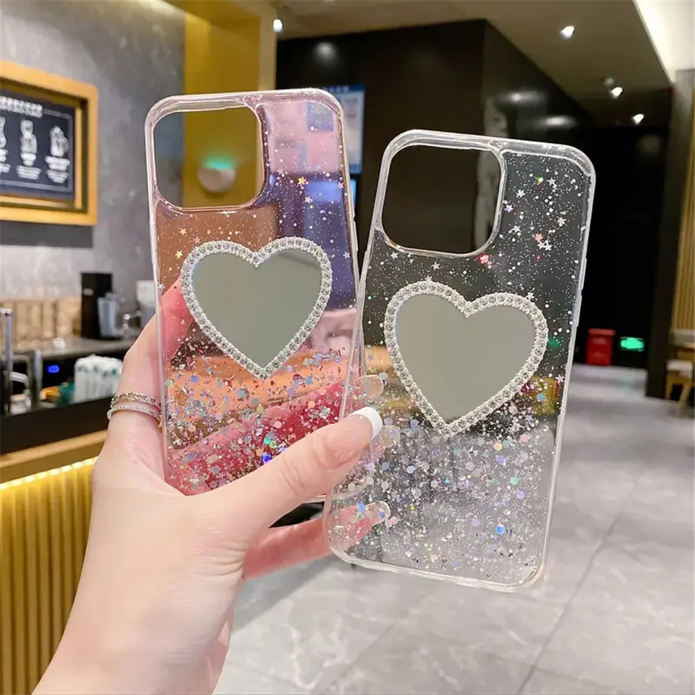 Para Xiaomi Redmi Note 14 Pro 5G funda de teléfono con espejo de diamante y corazón de lujo Redmy Note14 Pro 4G 5G Note 14 ProPlus + funda con purpurina