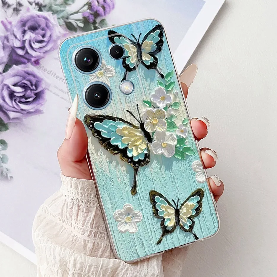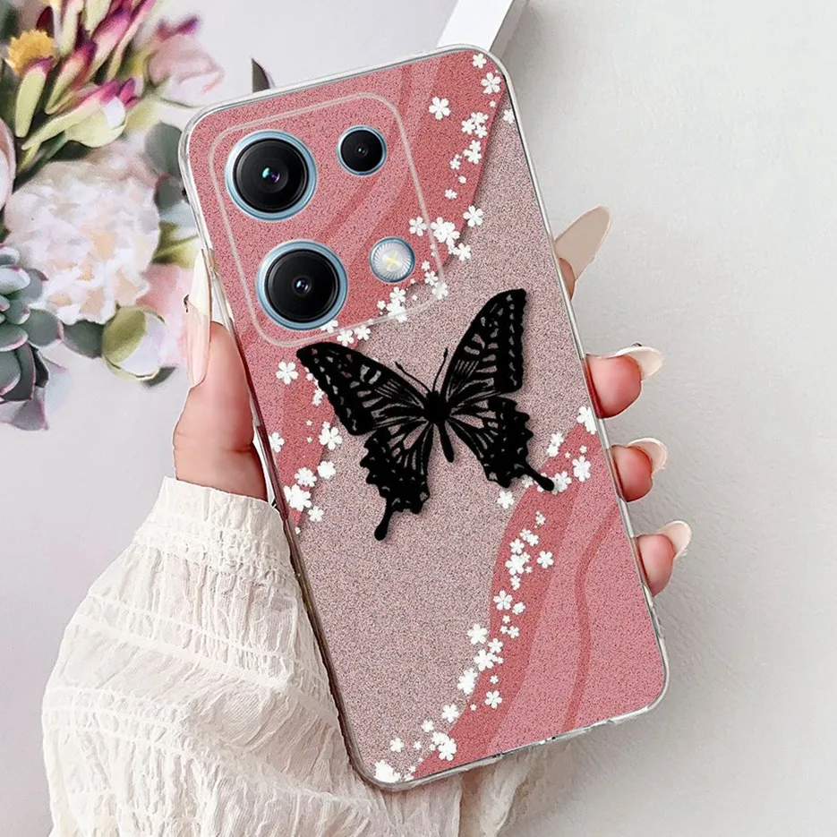 Para Xiaomi Redmi Note 14S funda elegante pintada de mariposa 6.67 ''funda de teléfono de silicona suave para Redmi Note 14S Note14S parachoques