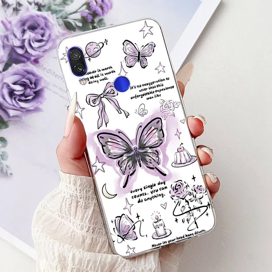 For Xiaomi Redmi Note 7 Pro 7S Case Butterfly Soft Clear Silicone Shockproof Back Cover For Xiaomi Redmi Note 7 S 7Pro Funda New