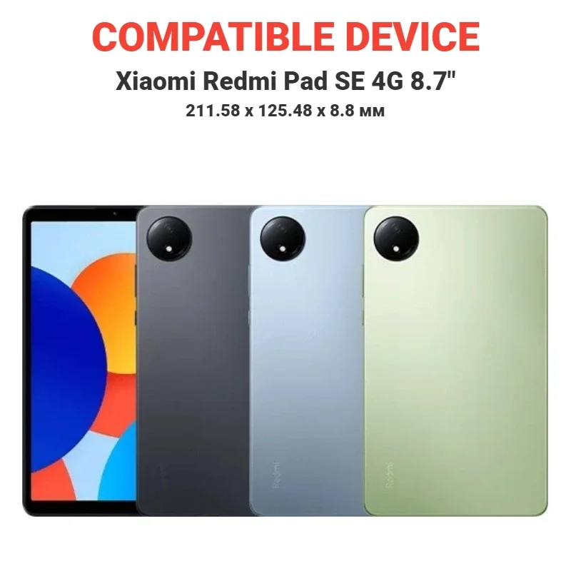 Descripción: -Funda 100% nueva y de alta calidad. -Diseño de lujo y moda, se adapta perfectamente a la forma. -Forro de microfibra suave, frente de cuero PU, antiarañazos, proporciona protección integral Compatible :Para funda Redmi Pad SE 4G de 8,7 pulgadas.
