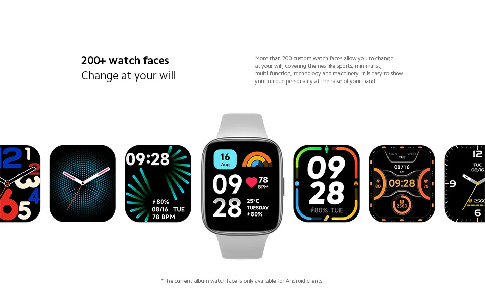 200 + Esferas de relojCambie a su voluntadMás de 200 Esferas de reloj personalizadas le permiten cambiarA su voluntad, cubriendo temas como deportes, minimalista.Multifunción, tecnología y maquinaria. Es fácil de mostrarSu personalidad única al levantar la mano.(* La esfera del reloj del álbum actual solo está disponible para clientes Android).Estuche clásico rectangular