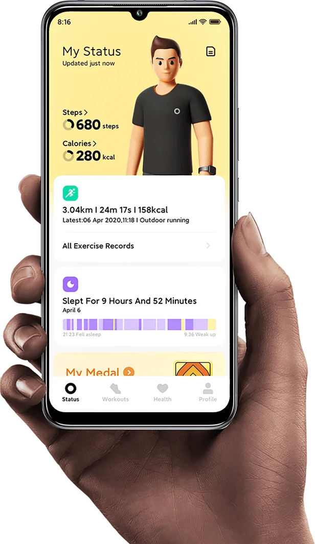Conozca mejor su cuerpo viendo su frecuencia cardíaca, entrenamientos, sueño y otros datos de salud en la aplicación Xiaomi Wear/Xiaomi Wear Lite *. Admite la sincronización de datos con Strava *, para que pueda compartir sus logros de entrenamiento con sus amigos.