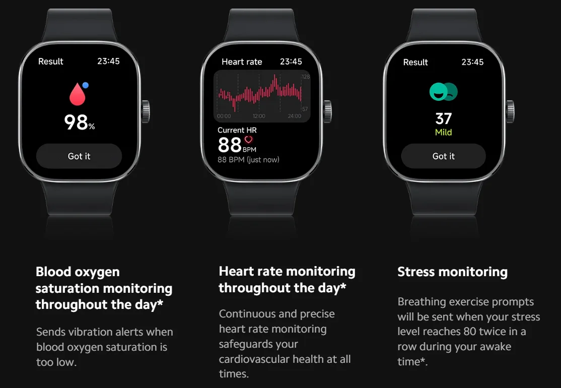* Los datos se derivan de Xiaomi Internal Lab y se comparan con Redmi Watch 3. Los resultados pueden variar debido a las diferencias en el equipo de prueba, el entorno y los patrones y hábitos de uso individuales. Consulte los datos reales.