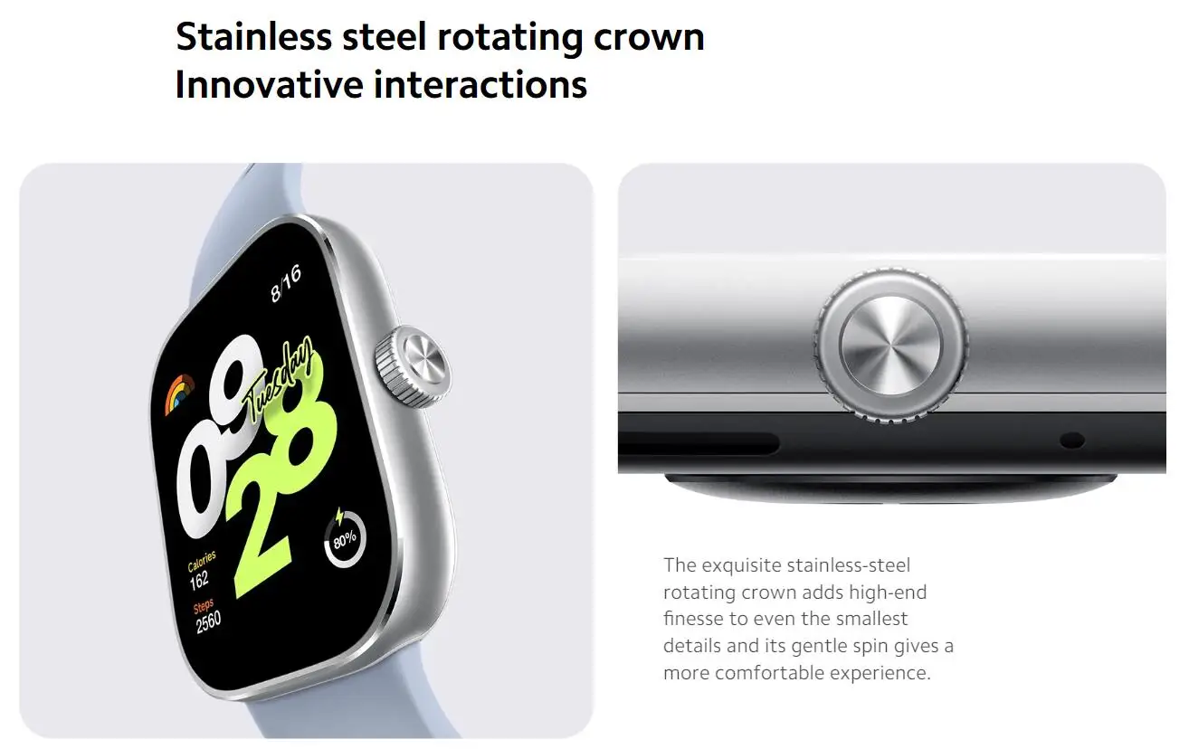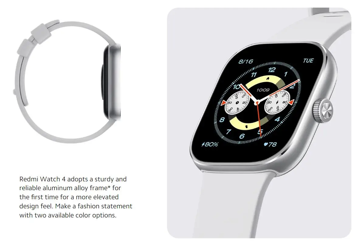 El reloj Redmi 4 adopta por primera vez un marco de aleación de aluminio resistente y fiable * para una sensación de diseño más elevada. Haga una declaración de moda con dos opciones de color disponibles.