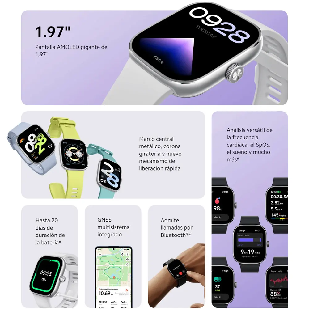 Comprar Xiaomi-reloj inteligente Redmi Watch 4, dispositivo con llamadas telefónicas, Bluetooth, control del estrés y del ritmo cardíaco y del oxígeno en sangre, Pantalla AMOLED de 1,97 pulgadas, 390x450 píxeles