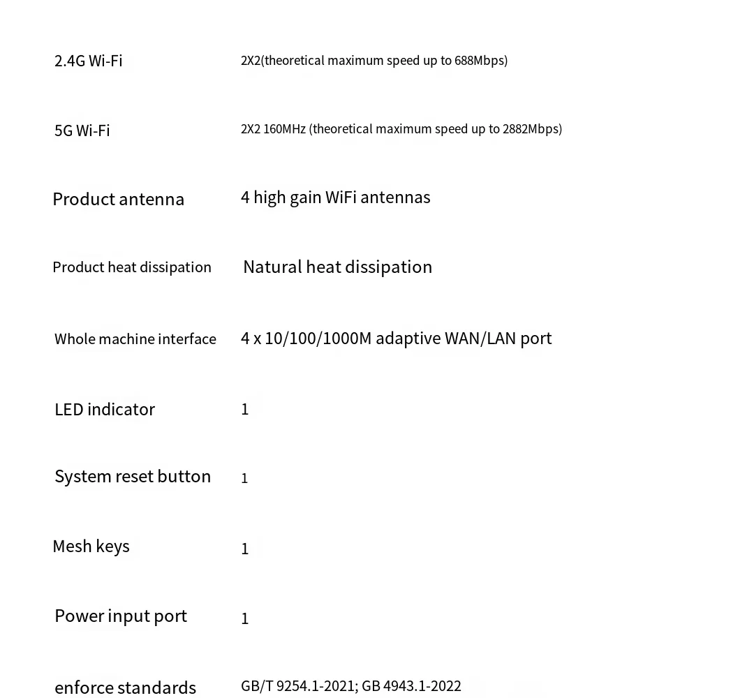 Wi-Fi 5G: 2X2 160MHz (Velocidad máxima teórica de hasta 2882Mbps)