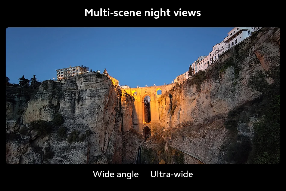 La Función de modo nocturno en las cámaras gran angular y ultra gran angular le ayuda a capturar las luces y sombras de la noche de forma más vívida, para que pueda fotografiar diferentes escenas por la noche.