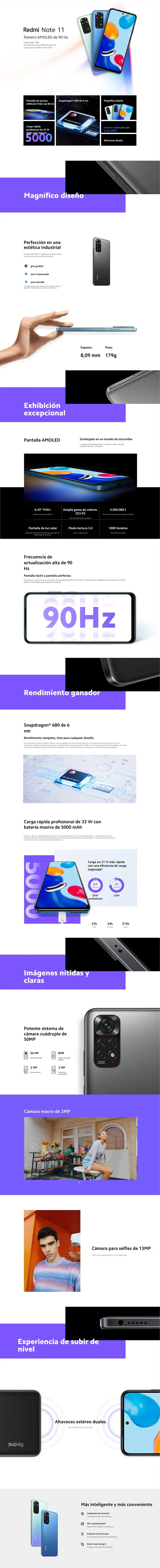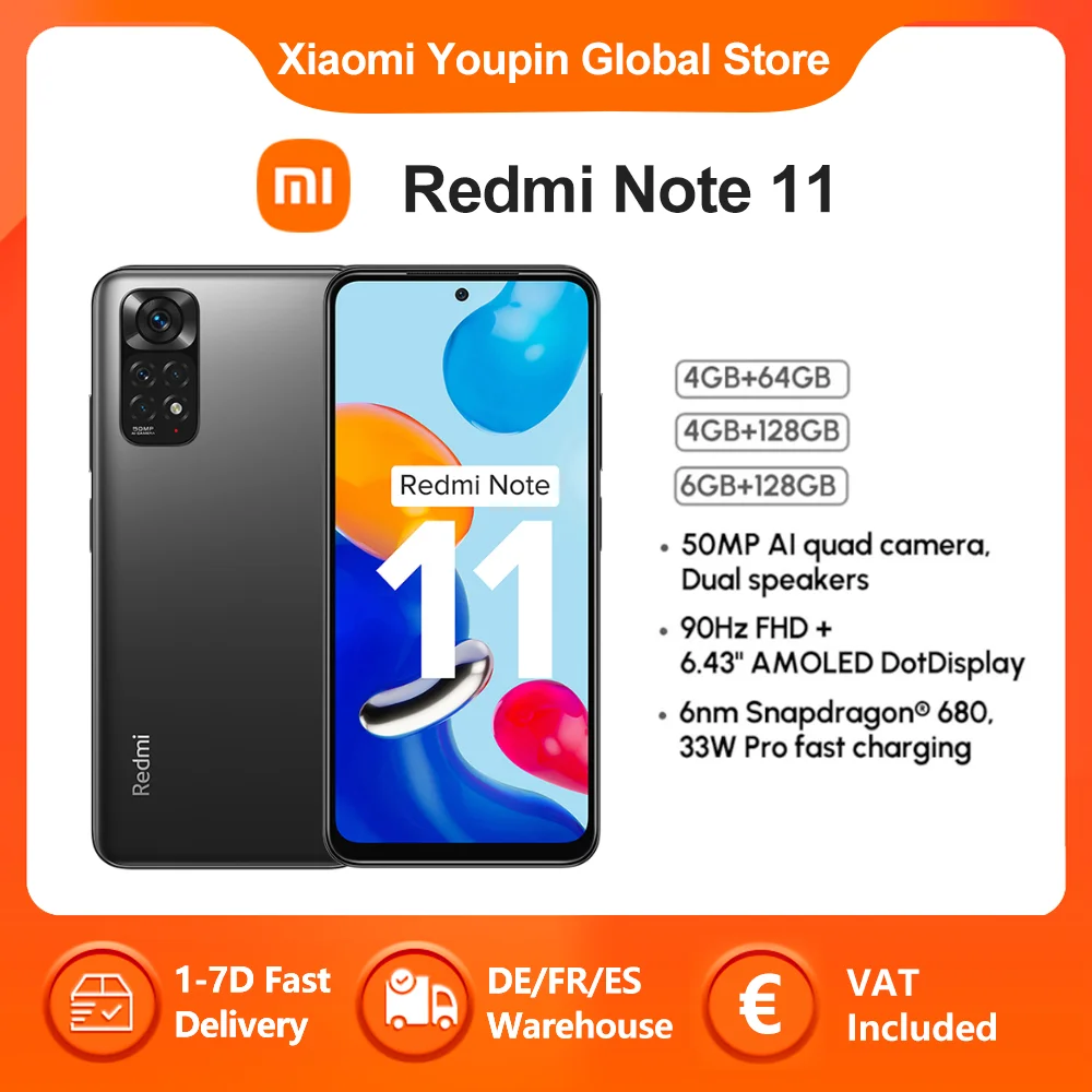 Comprar Xiaomi-Smartphone Redmi Note 11, versión Global, 6,43 ", AMOLED, 90Hz, 33W, Snapdragon 680, octa-core, soporte de carga rápida
