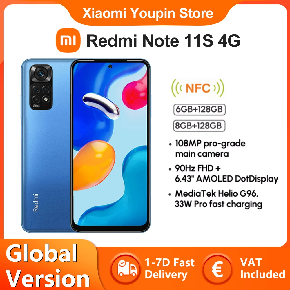 Comprar Xiaomi-Smartphone Redmi Note 11S versión Global, NFC, 90Hz, FHD, Pantalla AMOLED DotDisplay de 6,43 pulgadas, 33W, 5000mAh, MediaTek Helio G96, octa-core