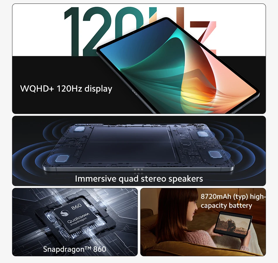 Xiaomi Pad 5 11 ''Tablets Versión Global 6GB 128GB Bluetooth Mi Pad WQHD + 120Hz Snapdragon 860 4 Altavoces Estéreo 8720mAh Batería
