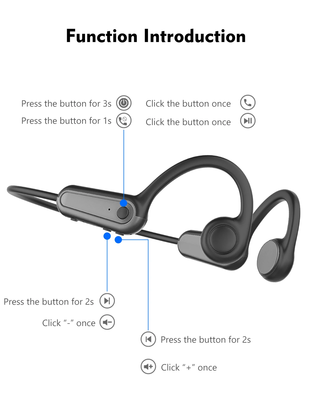 【OPEN EAR DESIGN】- Bone conducting headphones adopt Open-ear technology, which transfers sound through the cheekbone to keep you more attention on the surroundings
