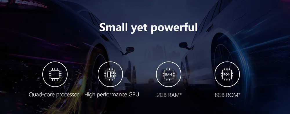 Quad-core processor | High performance GPU | 2GB RAM* | 8GB ROM*