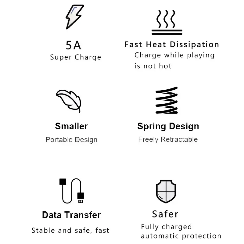 • Carga rápida: con una corriente máxima de 5 A, este cable puede cargar su dispositivo de forma rápida y eficiente.• Conector tipo C: el conector tipo C garantiza la compatibilidad con una amplia gama de dispositivos, lo que lo convierte en una opción versátil para todas sus necesidades de carga.• Diseño retráctil: el diseño retráctil del cable facilita su almacenamiento y transporte, lo que lo hace perfecto para usar mientras viaja.• Certificación CE: este cable está certificado por CE, lo que garantiza que cumple con altos estándares de seguridad y calidad.Nota:1.La carga rápida requiere que el teléfono, el cargador y el soporte del teléfono sean logrados, su teléfono y el cargador son cuánta energía para determinar cuánta energía puede admitir la carga.2.Color debido a los diferentes ángulos de la foto y ángulos de exposición, puede haber un pequeño error, prevalece en especie.3. Esta es la línea de datos de tensión del resorte, debe enderezar todo para alcanzar 1 metro o 1,5 metros, la longitud se mide manualmente, puede haber un pequeño error, prevalece en especie.Parámetros del producto:1.Longitud: 1m / 1,5m2.Color: negro, blanco, rojo3.Interfaz de carga: USB tipo C4.Función: Carga y transferencia de datosCaracterísticas del producto:Admite carga rápida, estiramiento del resorte y retracción libremente, fácil de transportar, no se anudará