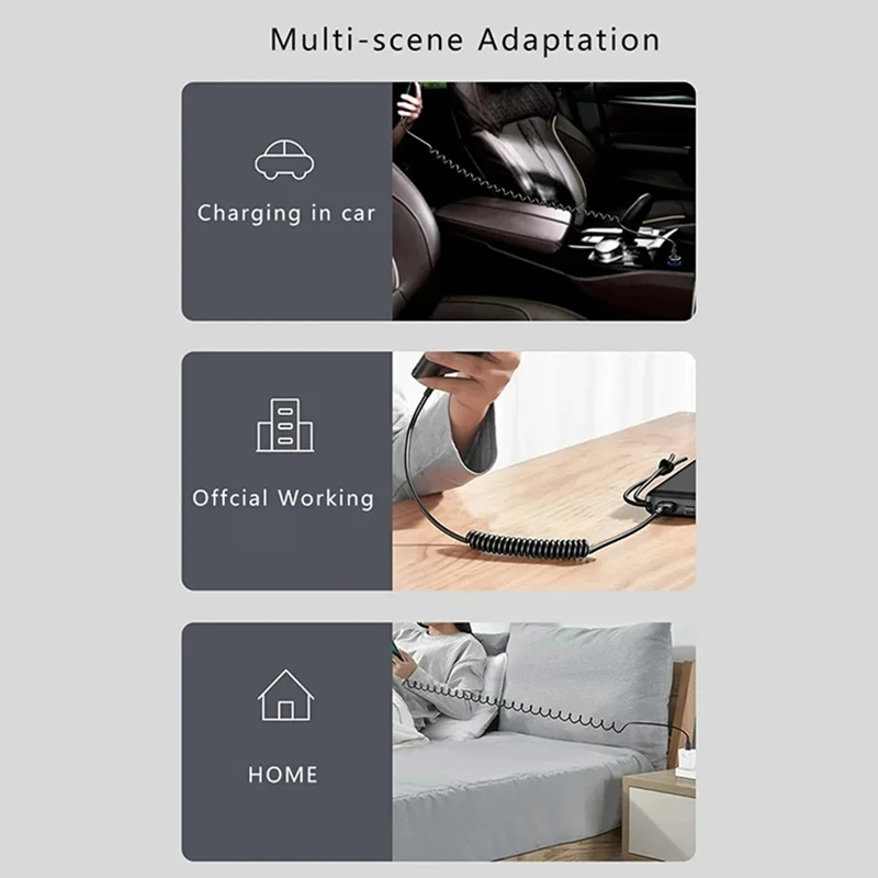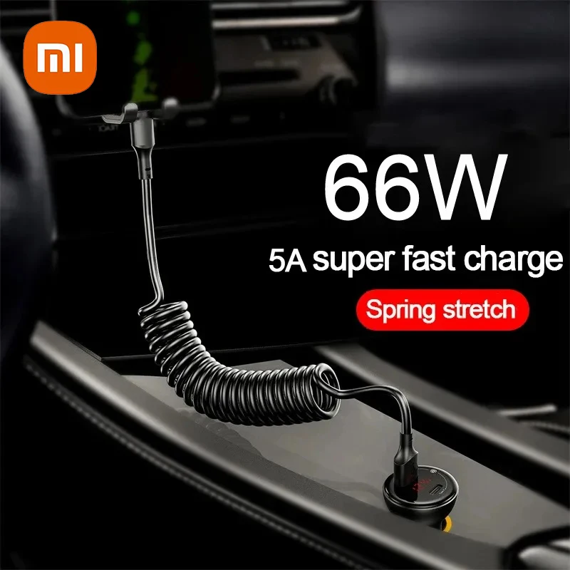 Xiaomi USB tipo C Cable 66W 5A resorte de carga rápida cargador telescópico de teléfono para coche