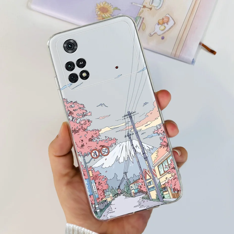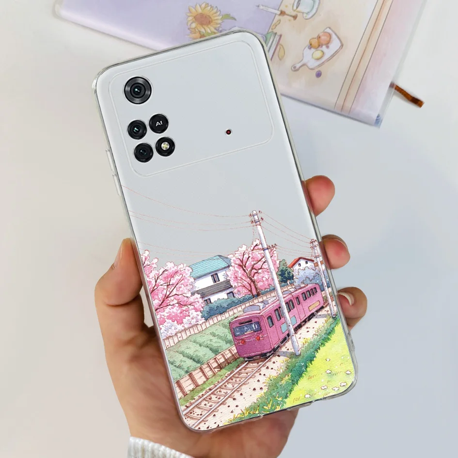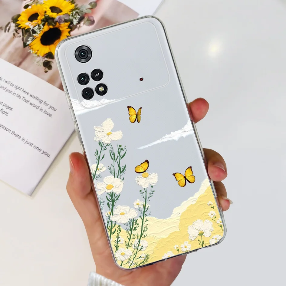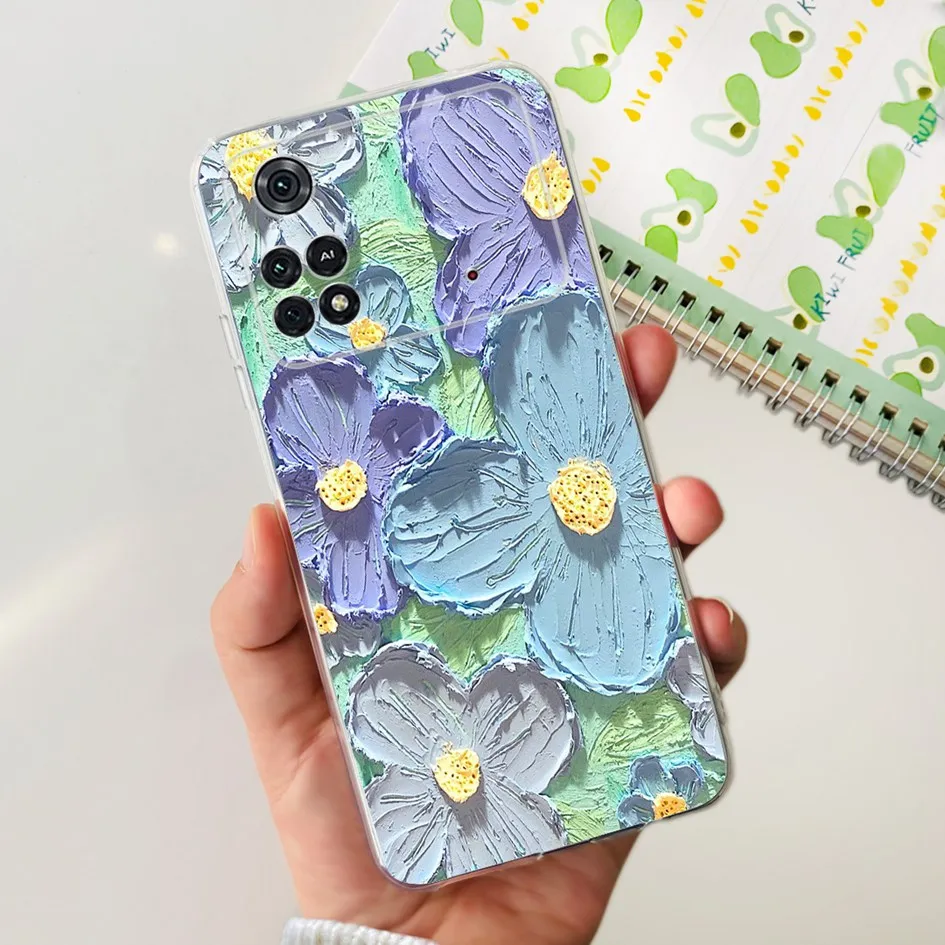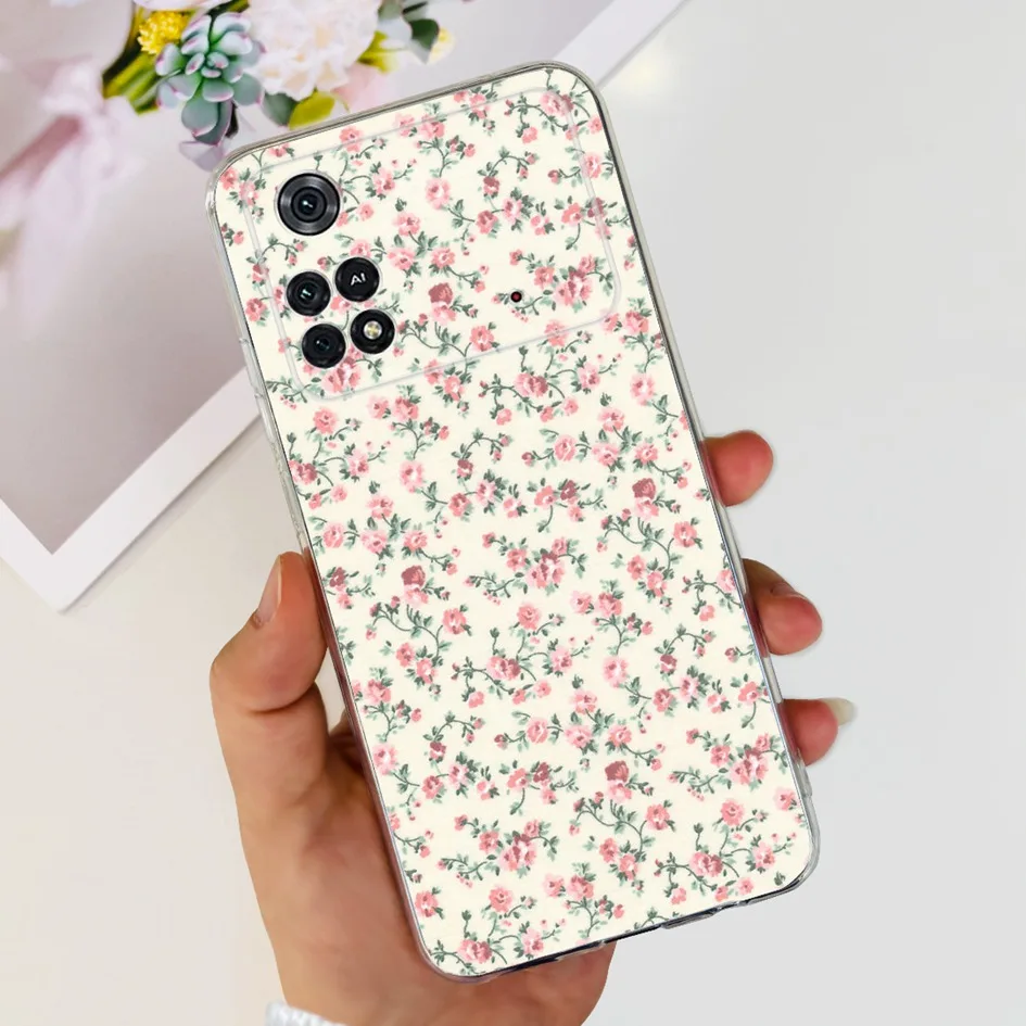 For Xiaomi Poco X4 Pro 5G Case Stylish Flower Painted Bumper For Xiaomi Poco M4 Pro 5G Phone Case PocoM4 Pro Soft Silicone Cover