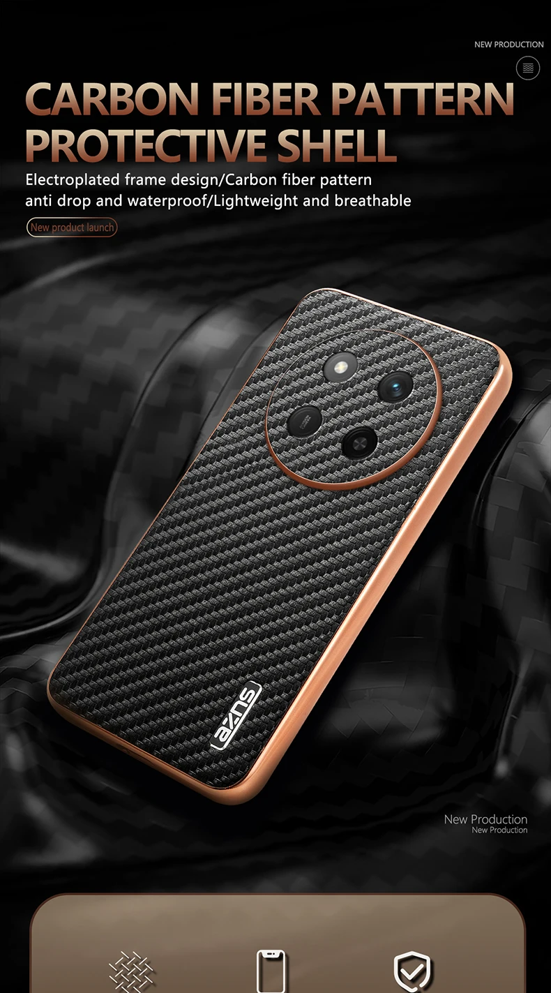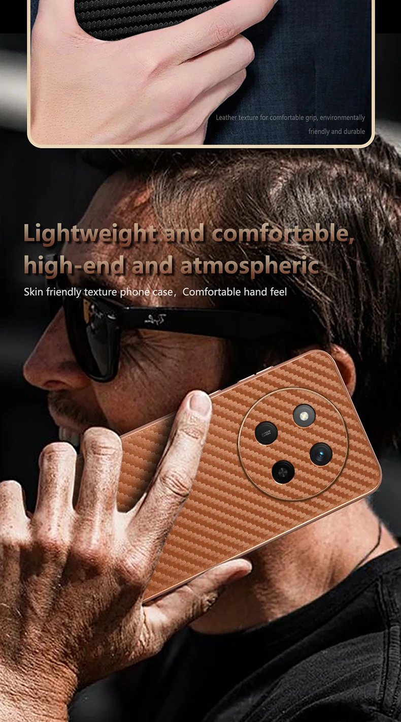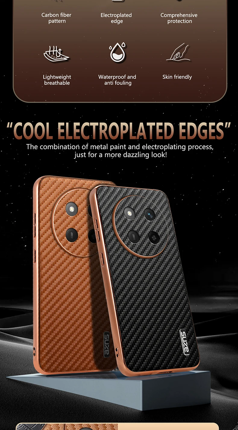 Para Xiaomi POCO X7 funda de lujo chapada en PU funda protectora trasera de fibra de carbono para Xiaomi POCO X7 5G carcasa de teléfono de cubierta completa