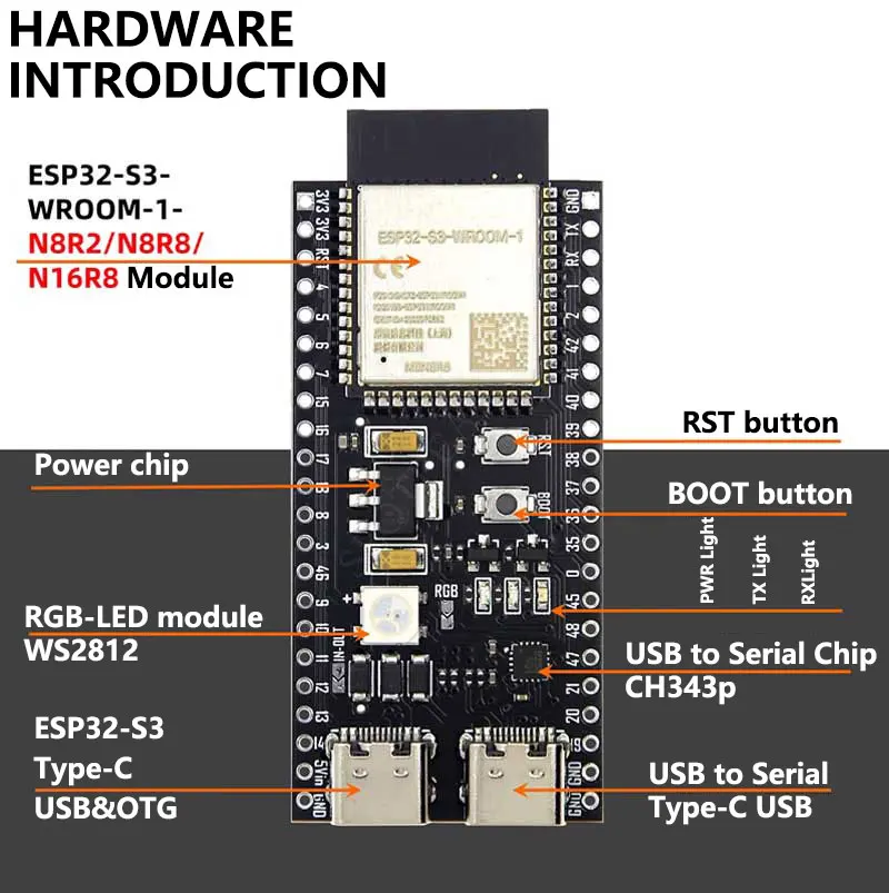 [] N16R8 (flash externo de 16 M/8 M PSRAM)/AI I0T/puertos USB duales tipo C/W2812 rgb/puerto USB a serie de alta velocidad