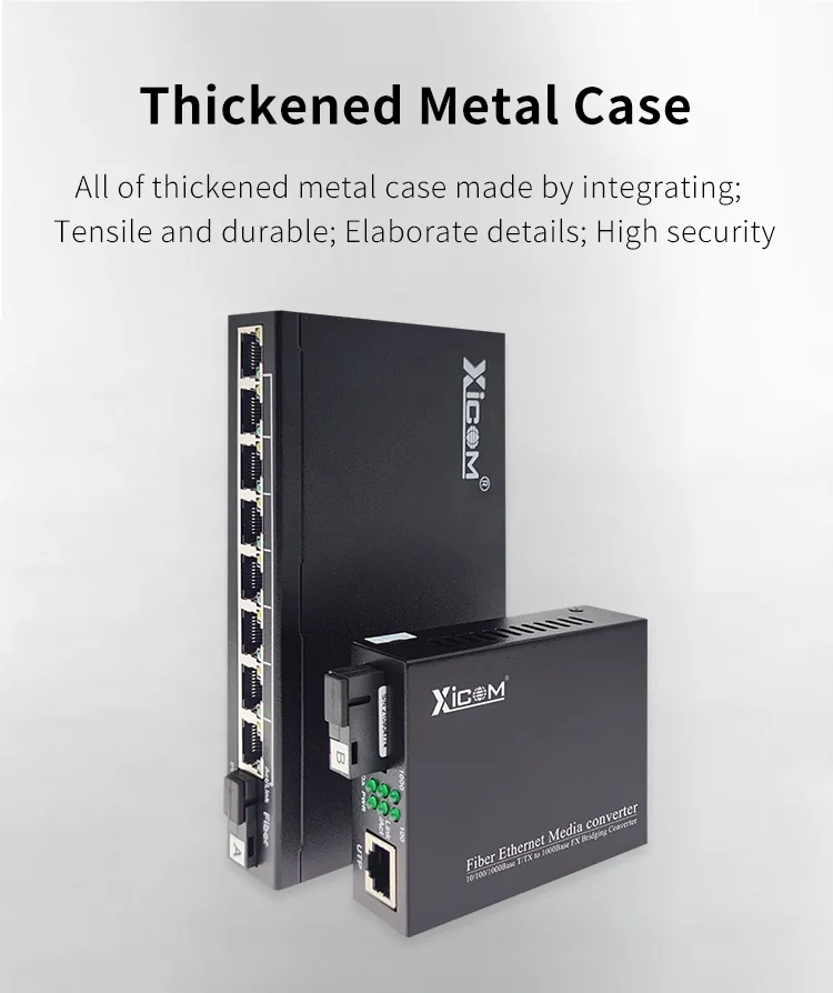 Xicom10/100M 25KM interruptor convertidor de medios ópticos fibra Simplex SC interruptor Ethernet de fibra transceptor Compatible Cisco/Mikrotik