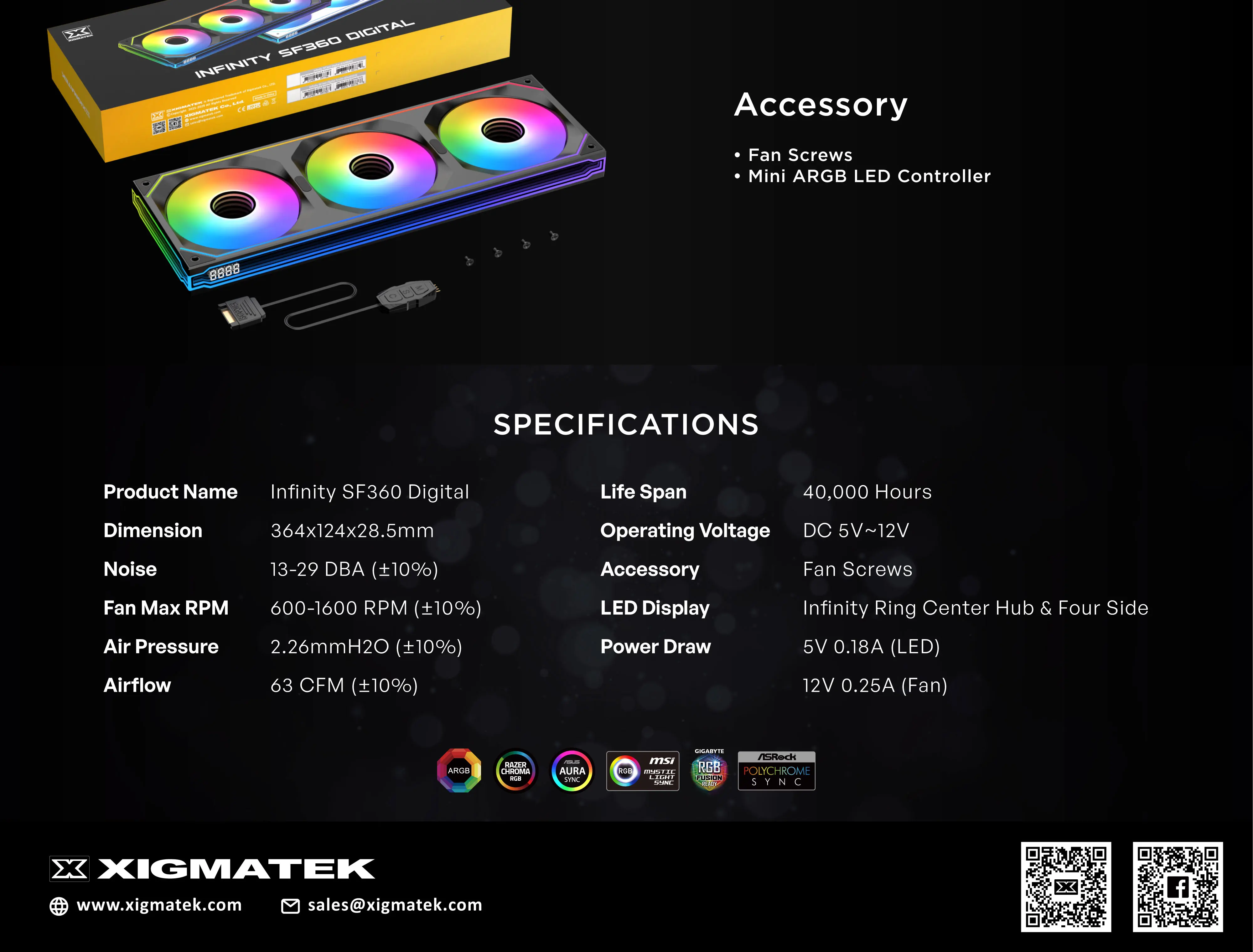 XIGMATEK Infinity SF360 ventilador Digital ARGB integrado, pantalla Digital espejo infinito/velocidad del ventilador de pantalla/come con controlador de ventilador