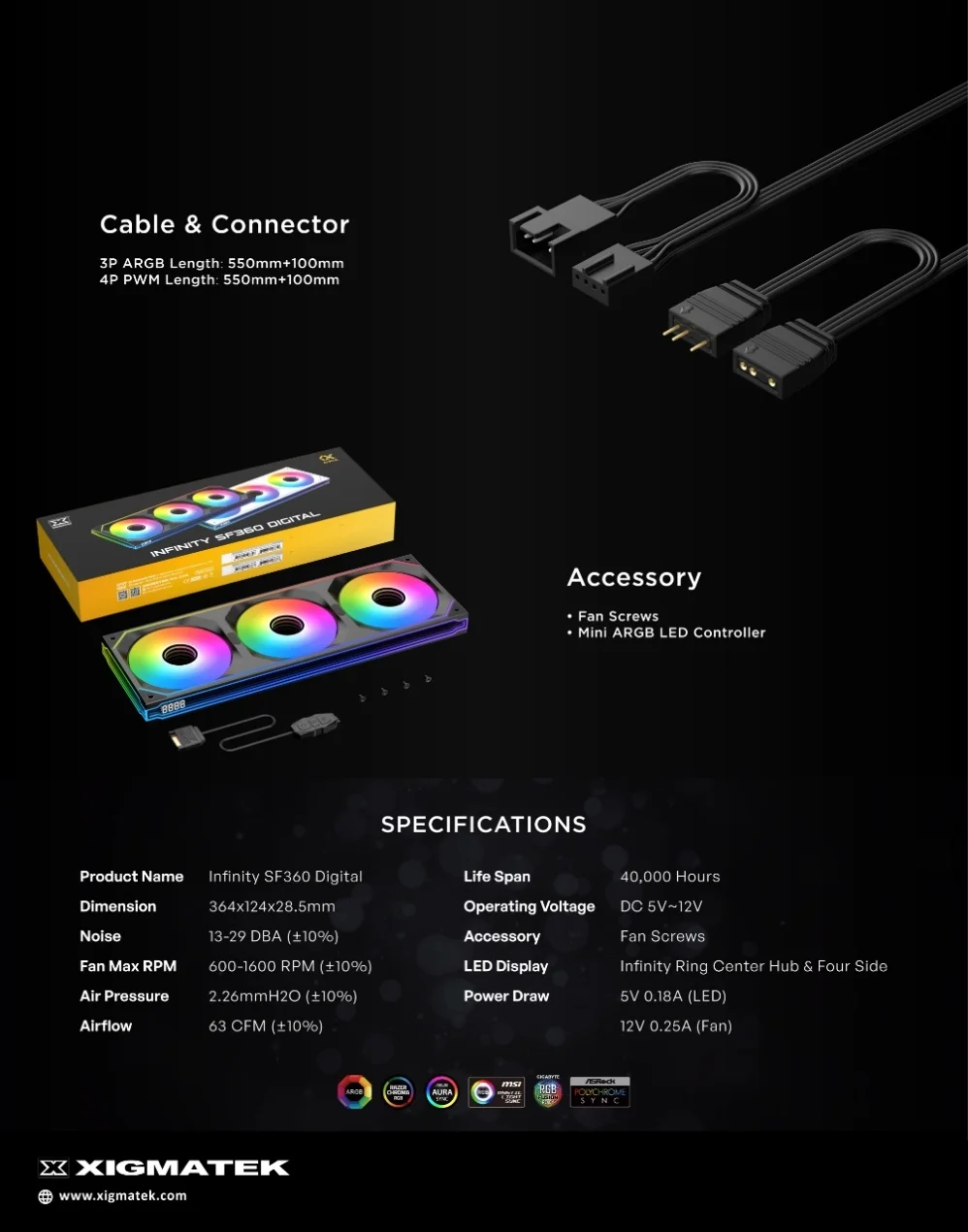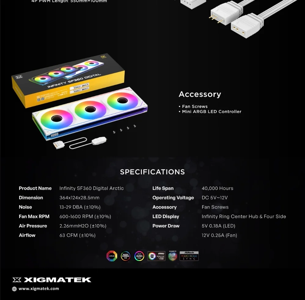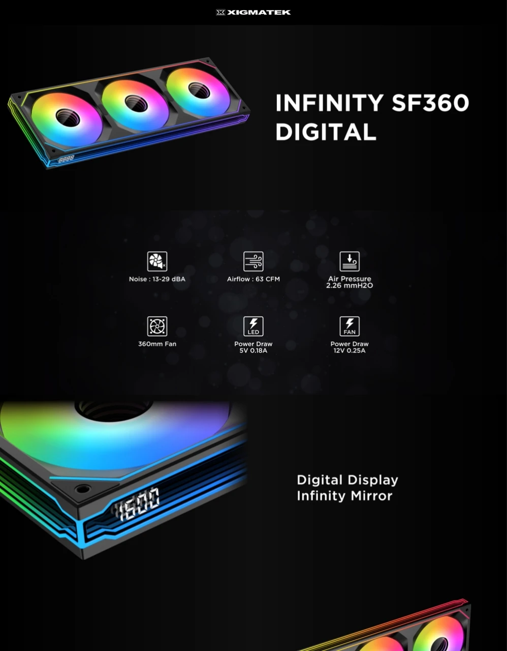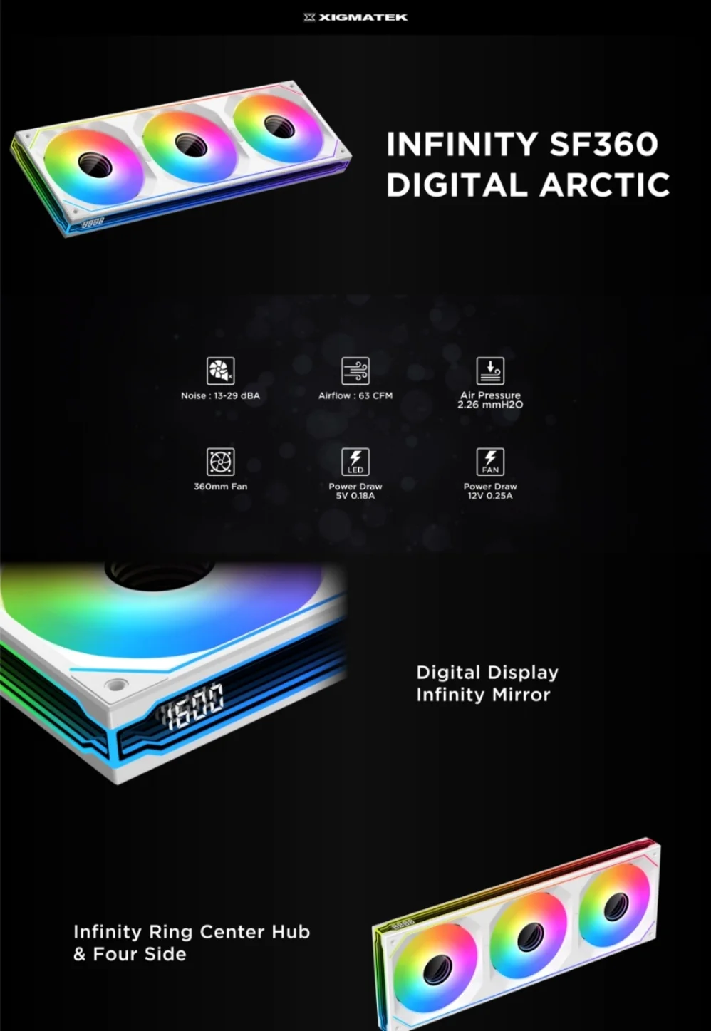 XIGMATEK SF360 DIGITAL ARGB PC ventilador con cubierta espejo infinito sincronización de la placa base 4PIN PWM CPU ventilador enfriador estructura unida