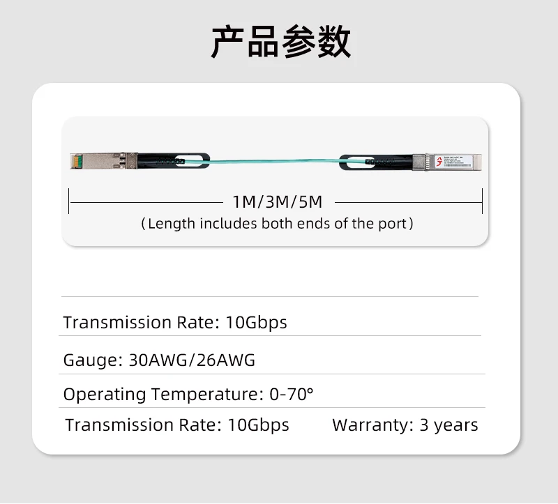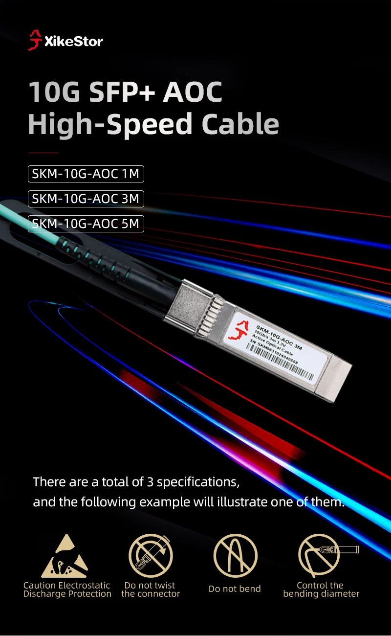 XikeStor 10G AOC Lan Cable SFP+ Conector Ethernet Compatible con 2.5G Gigabit Plug and Play 1M/3M/5M Amplia compatibilidad
