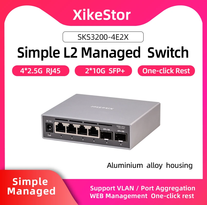 Comprar XikeStor 2.5G Simple L2 administrado 4 puertos 2.5G RJ45 2 puertos 10G RJ45 compatible con agarración de puerto VLAN Reinicio con un solo clic