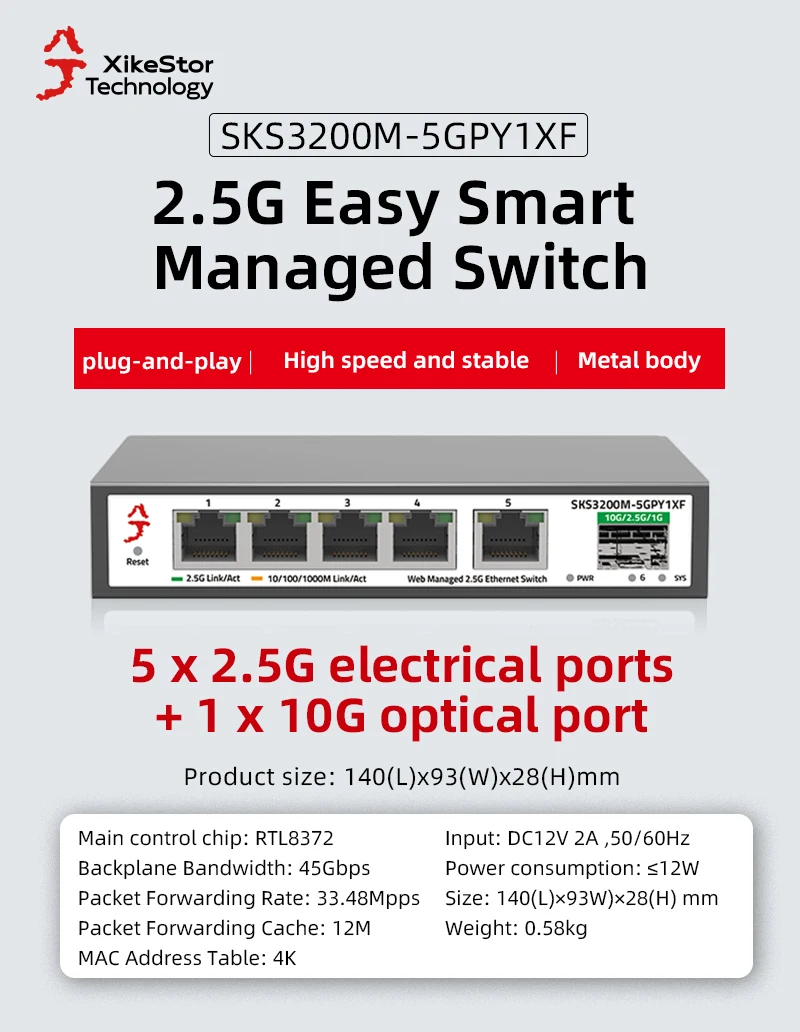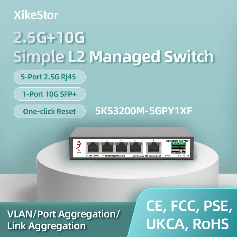 Comprar XikeStor-2,5G Simple L2 gestionado, 5 puertos, 2,5G, RJ45, 1 puerto, 10G, SFP + Ethernet, compatible con VLAN, agregado de puertos, LACP