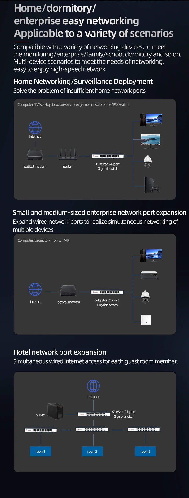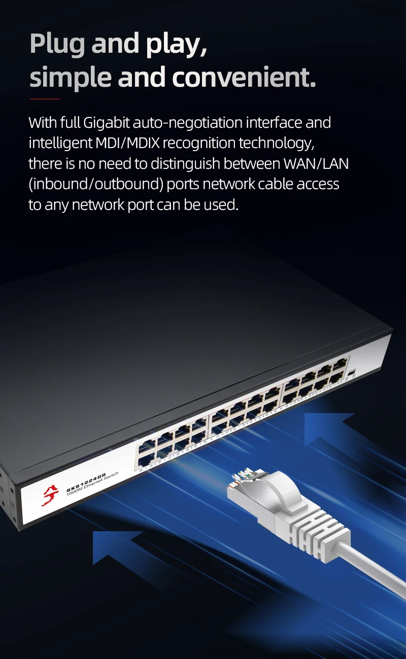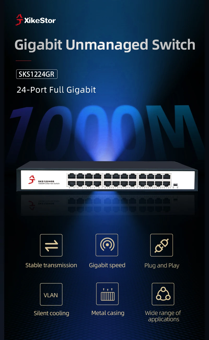 Comprar XikeStor-conmutador de 24 puertos Gigabit RJ45, divisor de Cable de red no gestionado, enchufar y usar, equipos de red comerciales, 1000M