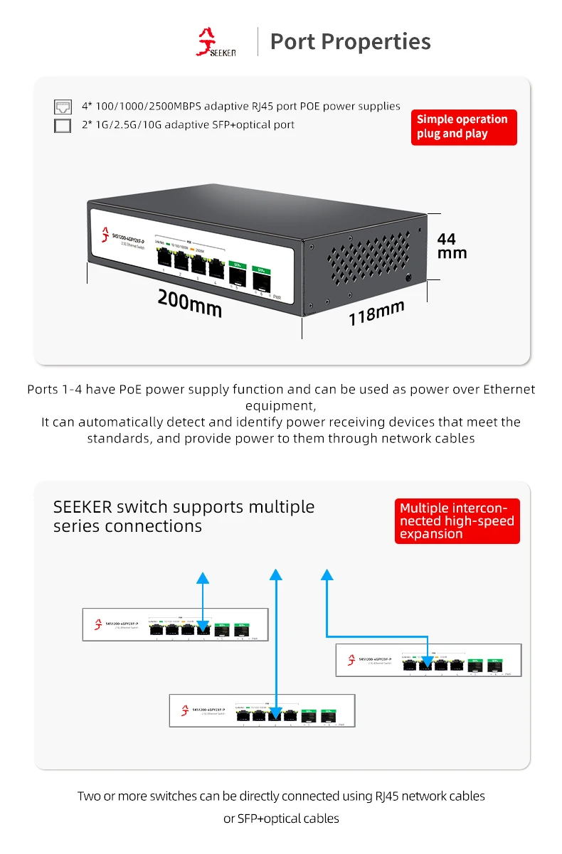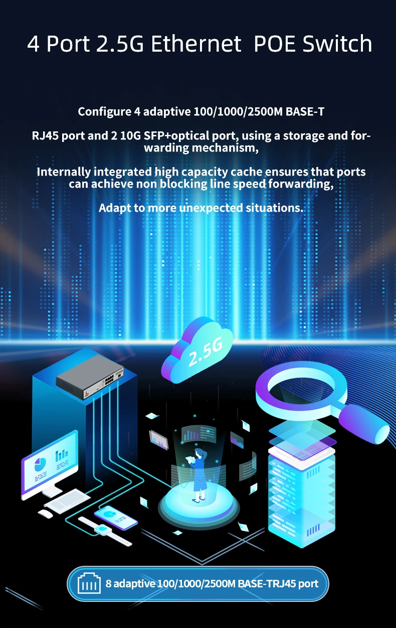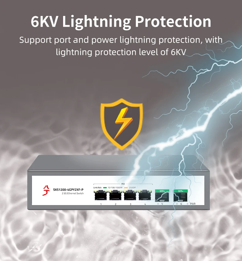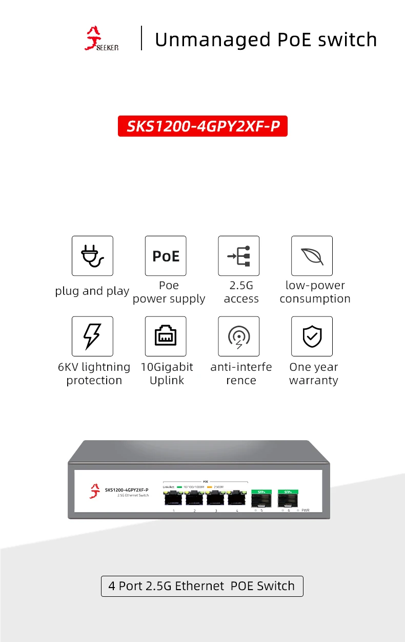 Comprar XikeStor-conmutador de red POE no gestionado, 6 puertos, 2,5G, 4 puertos POE RJ45, 2 10G SFP + ranuras, caché integrado interno de alta capacidad