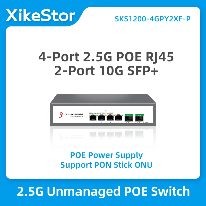 Comprar XikeStor-conmutador de red POE no gestionado, 6 puertos, 2,5G, 4 puertos POE RJ45, 2 10G SFP + ranuras, caché integrado interno de alta capacidad