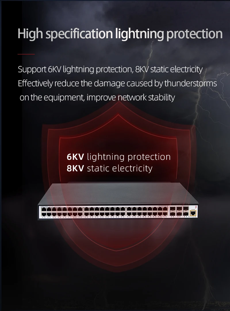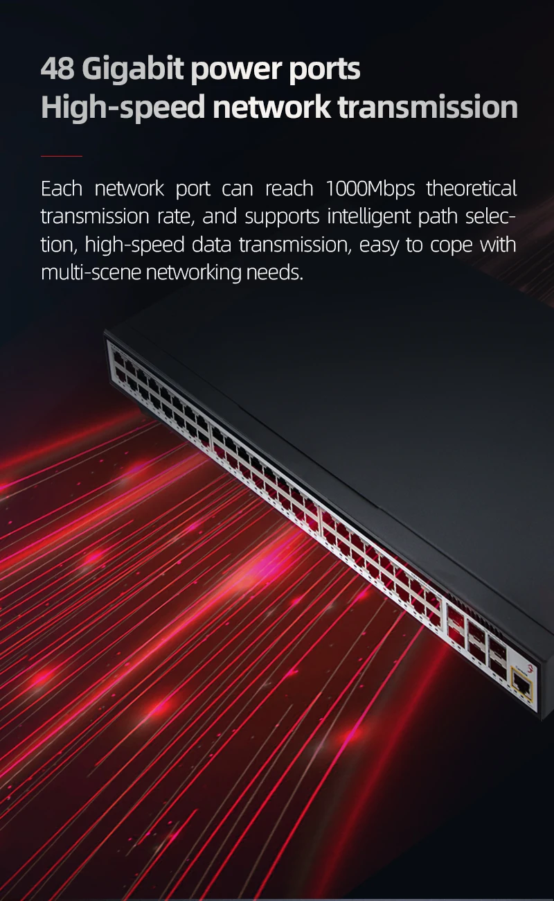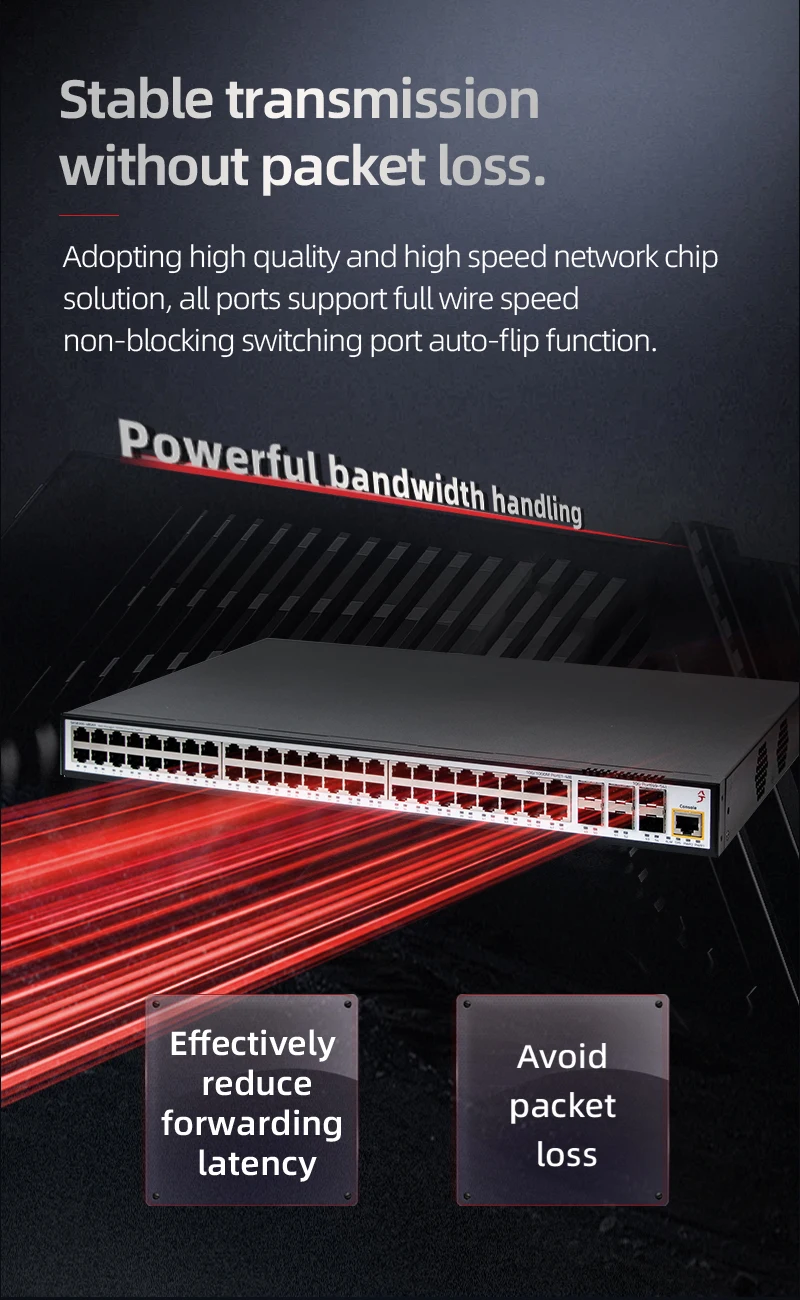 XikeStor L3 Conmutador administrado 48*1G RJ45 y 6*10G SFP, VLAN/QOS/LACP/DHCP, montado en rack, adecuado para empresas/SMB
