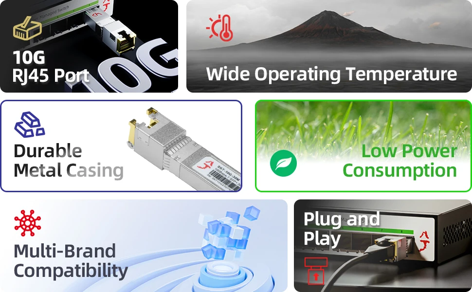 Comprar XikeStor módulo transceptor de 10Gigabit SFP + a RJ45, conmutador de servidor de 10G y 2,5G, puerto óptico a puerto de red RJ45, módulo óptico SFP