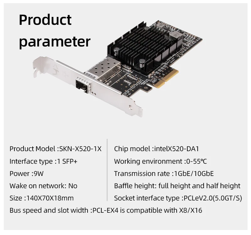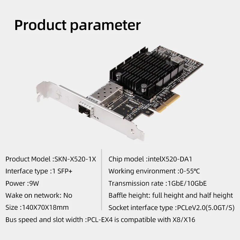 Comprar XikeStor-tarjeta de red SFP +, adaptador de servidor NIC, Chip de X520-DA1, PCI-E X8, fibra óptica, 10G