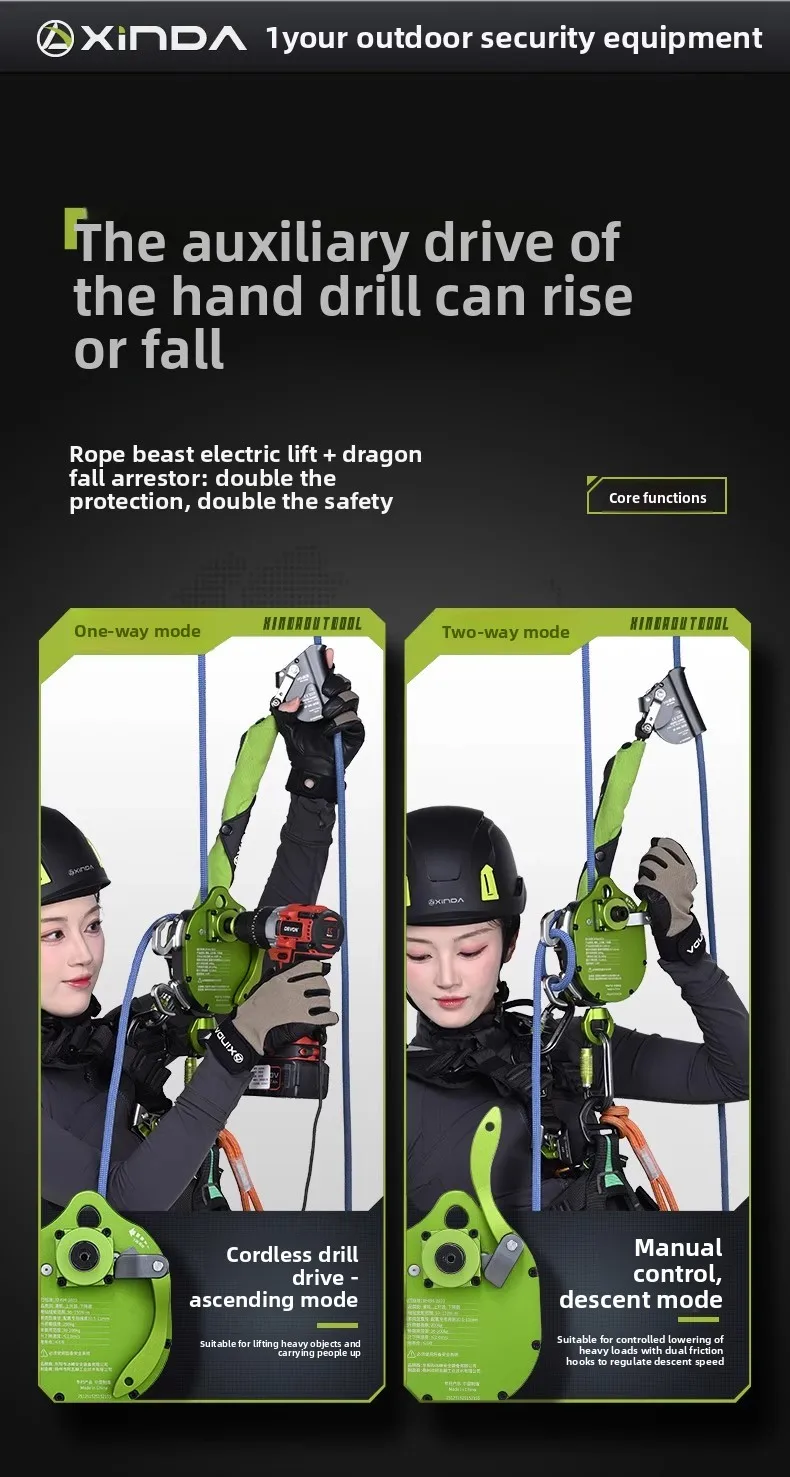 Kit de ascendente eléctrico Xinda, elevador eléctrico con pararrayos de caída, equipo de trabajo aéreo para acceso a cuerdas y actividades al aire libre