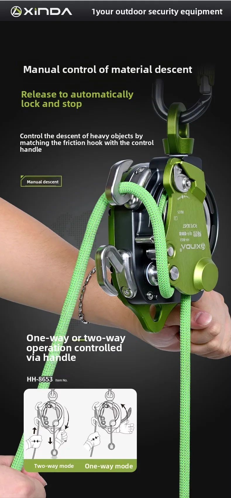 Introducción del producto: * Material: aluminio de alta calidad y acero inoxidable. * Uso: Escalada en roca al aire libre, Escalada con cuerda, Actividades al aire libre, rescate con cuerda, Dispositivo de rescate con cuerda, Instalación de aire acondicionado, Instalación de ventanas, Trabajo aéreo, * Rendimiento y rendimiento: Puede soportar temperaturas extremas de hasta 105℃ * Instalación: Fácil de instalar sin herramientas adicionales * Accesorios: Equipado con todo el hardware necesario para garantizar un ajuste seguro
