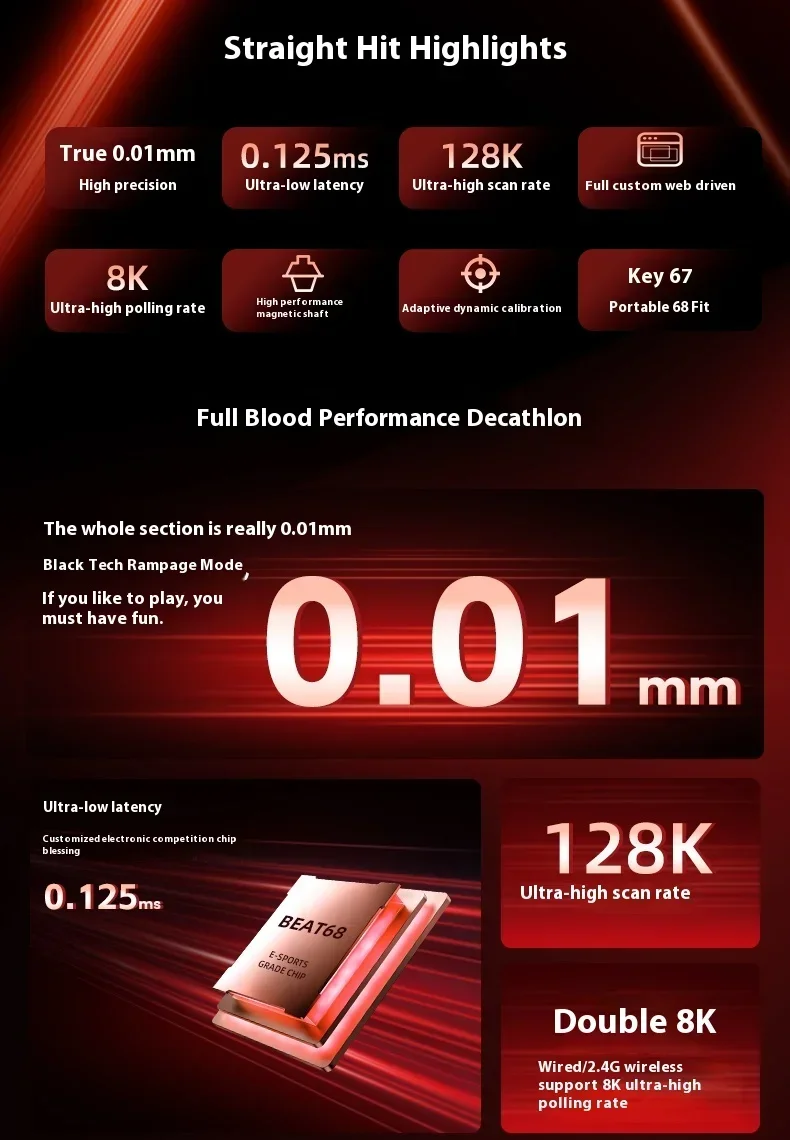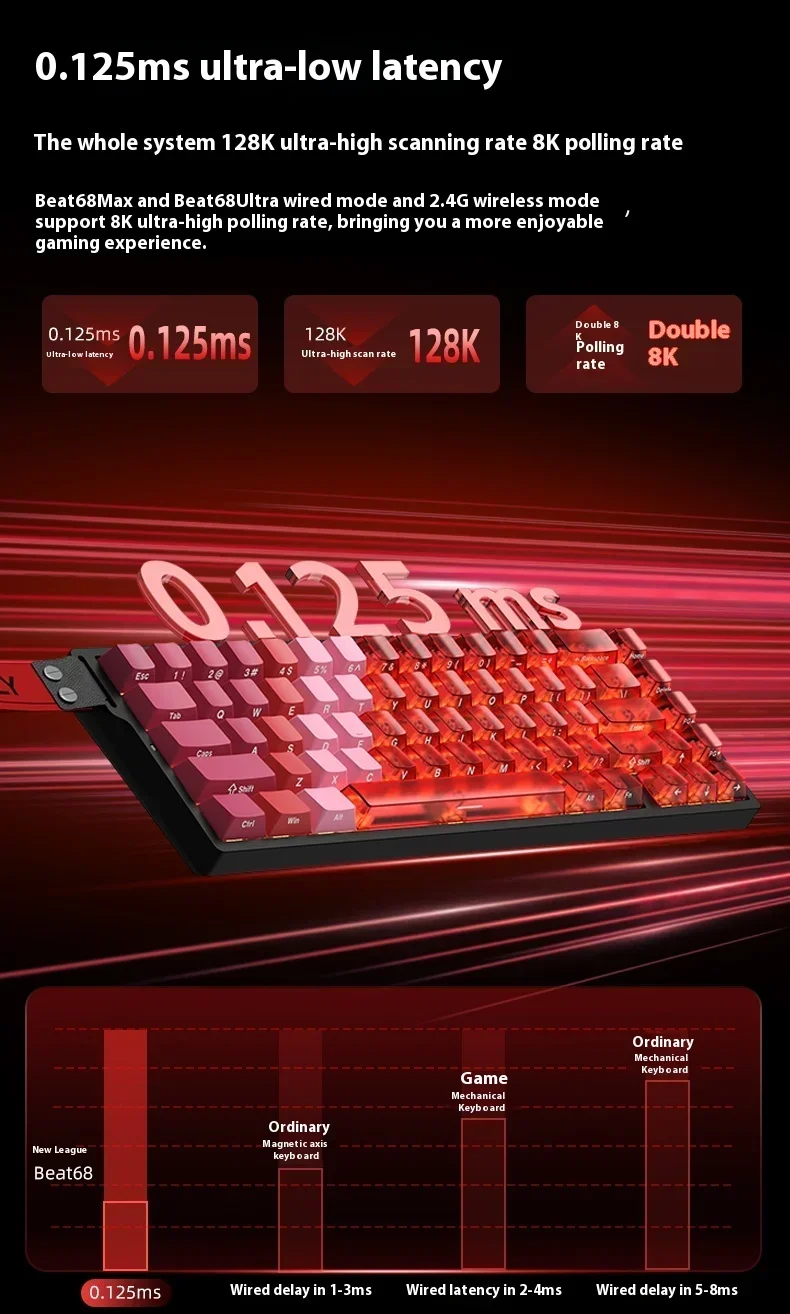 XINMENG Beat68 HE interruptor magnético Ultra con cable teclado para juegos modo Tri 0,01mm disparo rápido 8000Hz 28K velocidad de escaneo 7000mAh regalos