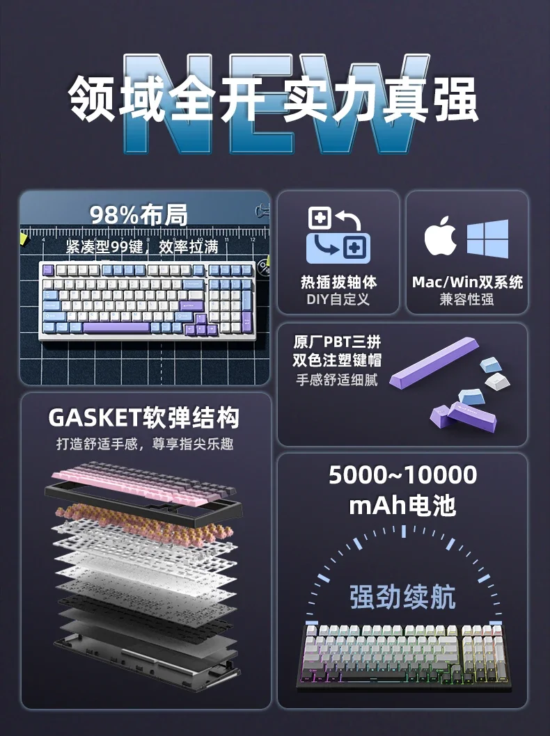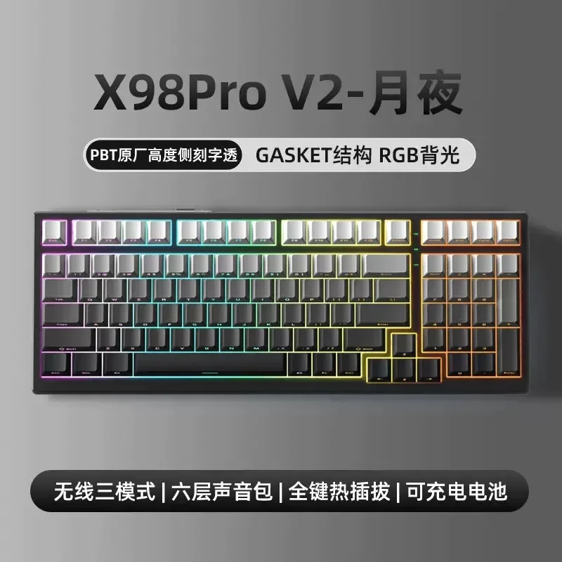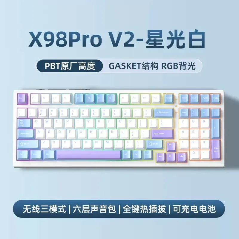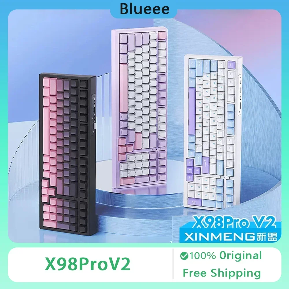 Comprar XINMENG-Teclado mecánico X98ProV2, accesorio inalámbrico con tres modos de intercambio en caliente, Junta RGB, para videojuegos, OfficePC