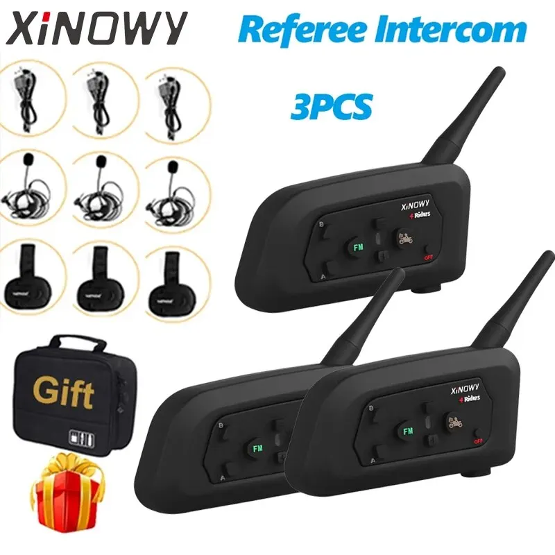 Comprar XiNOWy-intercomunicador V4C PRO 3 para árbitro de fútbol, auriculares con Bluetooth, 1200m, dúplex completo, interfono para Conferencia de Fútbol, 3 piezas
