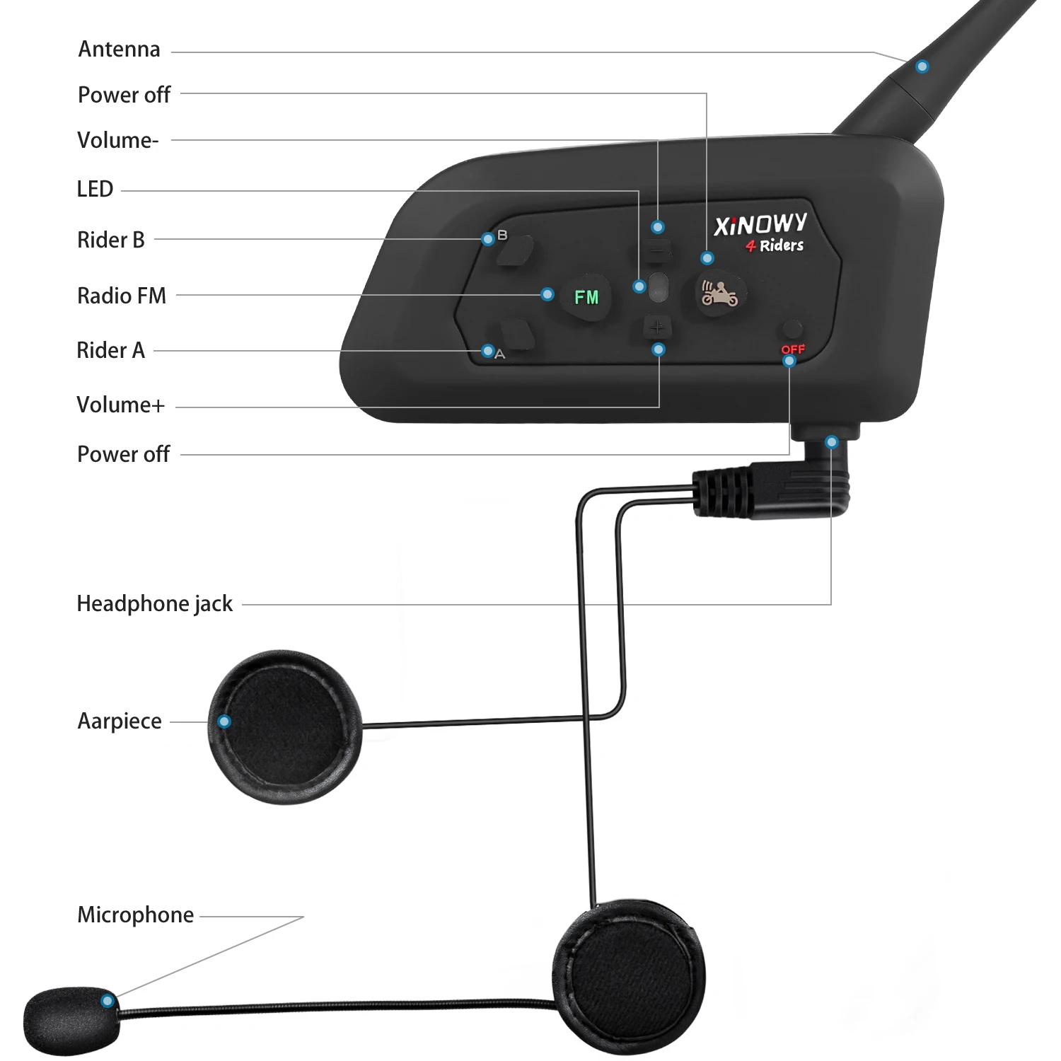 El sistema Bluetooth que permite la distancia máxima de llamada entre dos jinetes de hasta 1200m y en realidad realiza la comunicación inalámbrica totalmente dúplex entre 4 jinetes.