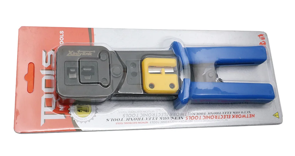 Alicates de crimpado especiales de la marca xintylink, diseñados para trabajar con conectores de paso, y también pueden funcionar para conectores ordinarios.