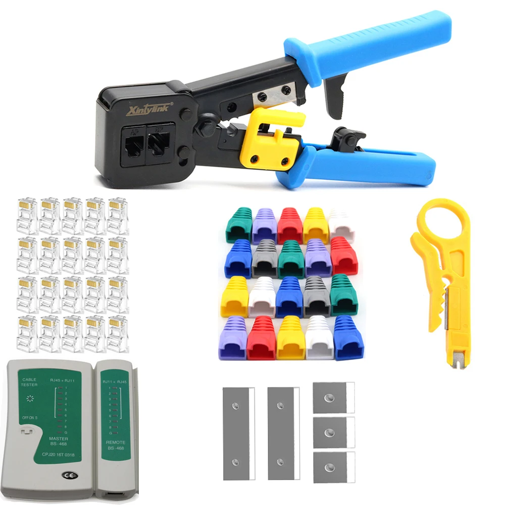 Herramientas de red xintylink EZ RJ45 crimpadora RJ11 Pelacables de prensado Kit de presión pinzas clip Clipper multifunción LAN cableado RJ11 rj12 RJ45 CAT5 CAT5e Cat6 paso a través tiene conexión de orificio Poe STP UTP 8p8c 8pin