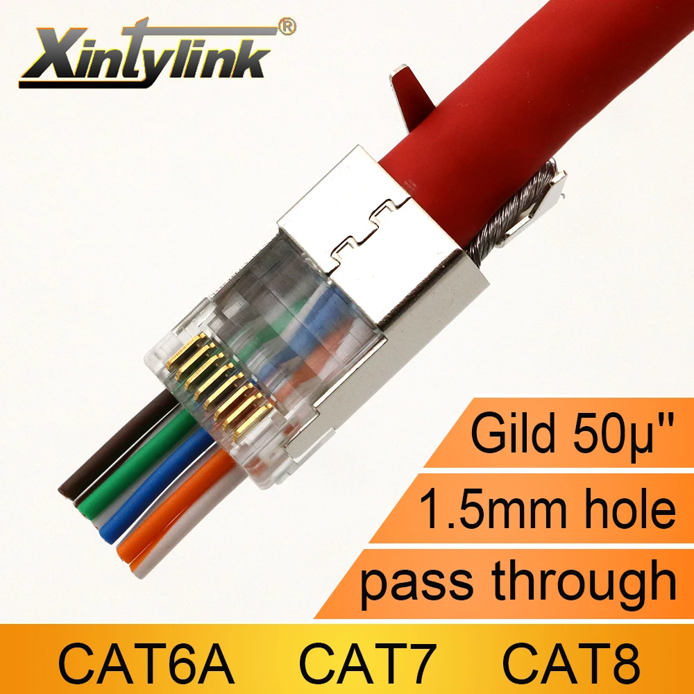 Comprar Xintylink-Conector de cable ethernet, CAT8, CAT7, CAT6A, rj45, 50U, SFTP, FTP, STP, conector blindado, paso a través del agujero de 1,5mm, nuevo
