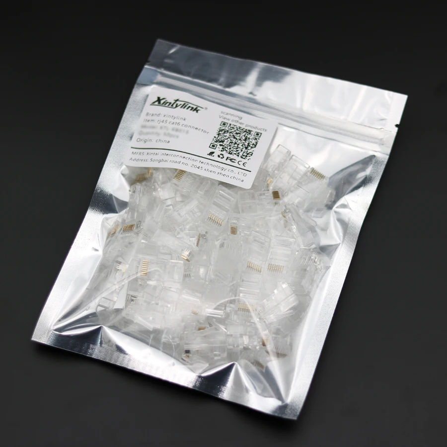 Xintylink 50 piezas 100 piezas conector rj45 conector de red cat6 8p8c terminales de enchufe modulares rj45 sin blindaje para cable ethernet utp