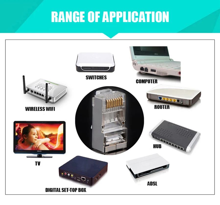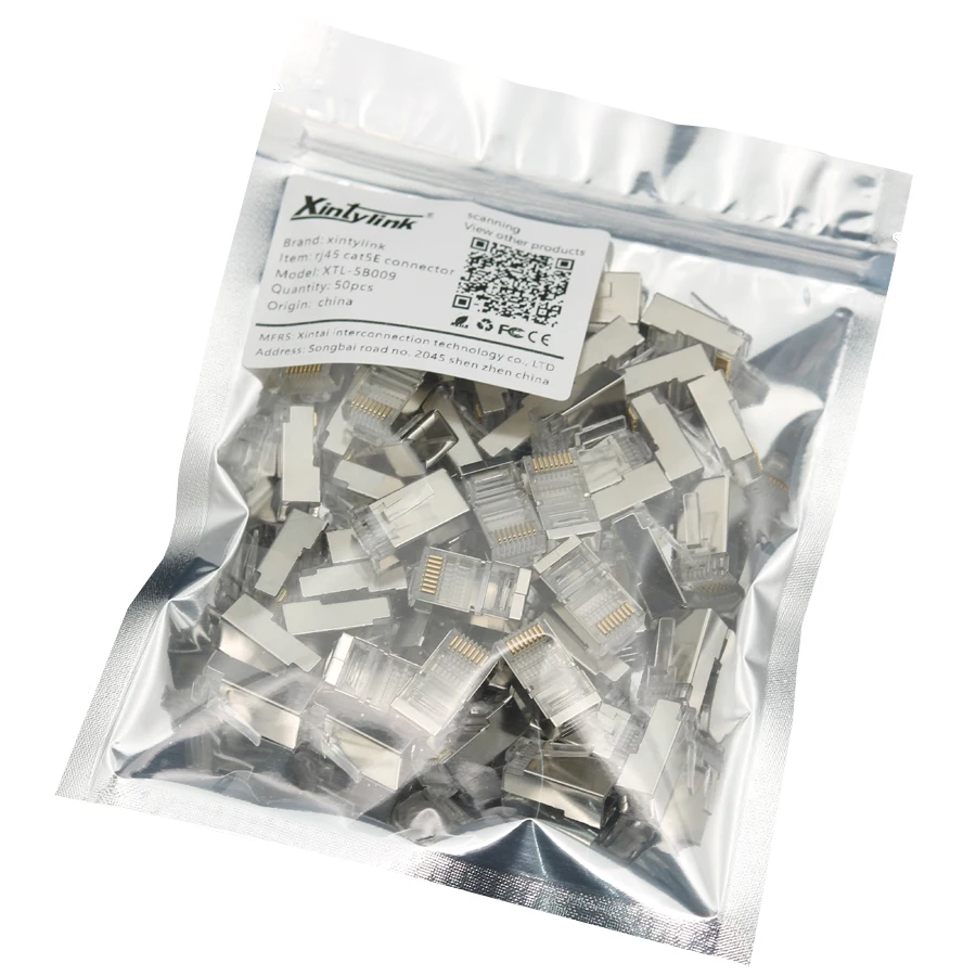 Comprar Xintylink-conector de cable ethernet rj45, conector macho de red lan, cat5e, 8p8c, jack rg rj 45, stp, blindado rg45, cat 5, cat5, 50 unidades, 100 unidades