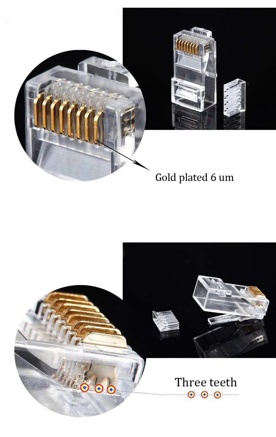 (Si su cable Ethernet RJ45 tiene más de 1,05mm de diámetro, sugiero comprar conectores RJ45 cat6a o cat7 en mi tienda)