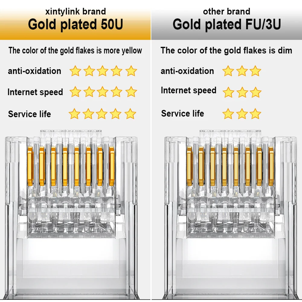 Comprar Xintylink-conector de cable ethernet rj45, conector de red macho cat8 cat7 cat6a, Conector de metal blindado 50U 8P8C sftp lan modular de 1,5mm