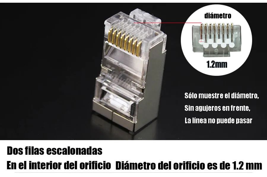 (si su cable ethernet rj45 es mayor que 1.2mm en diámetro, sugerir a comprar conectores rj45 cat7 o cat6a en mi tienda)