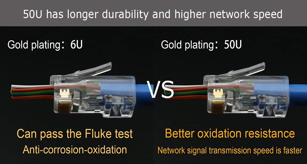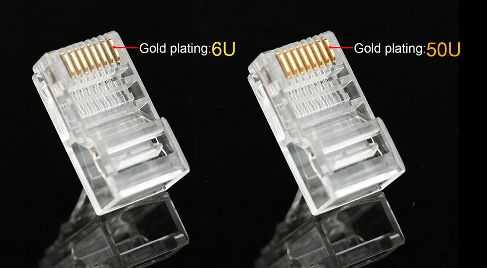 El chapado en oro 50U es el grado más alto, es oro real, la conductividad es muy alta, los datos de transmisión son más estables, adecuados para lugares más exigentes.