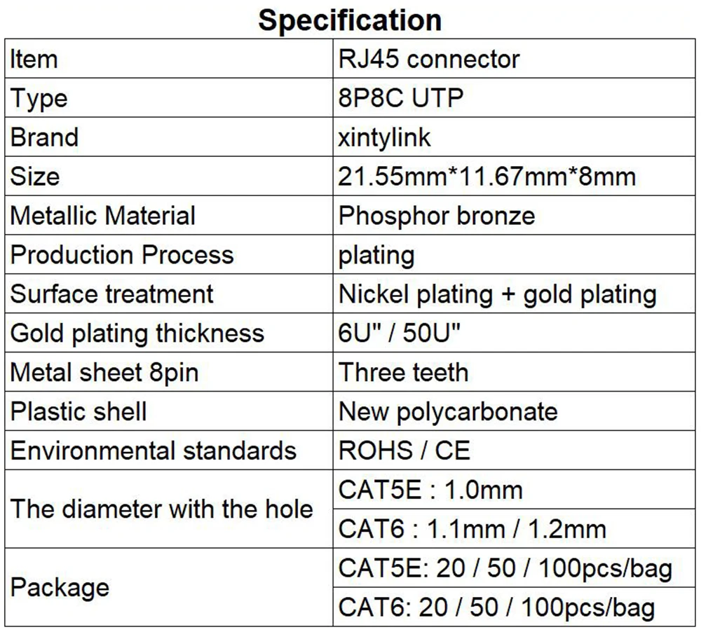 Siempre que sea el conector RJ45 vendido en nuestra tienda, Si los terminales metálicos están oxidados, proporcionamos reemplazo gratuito de la misma cantidad de conectores nuevos. La fecha límite es para siempre.