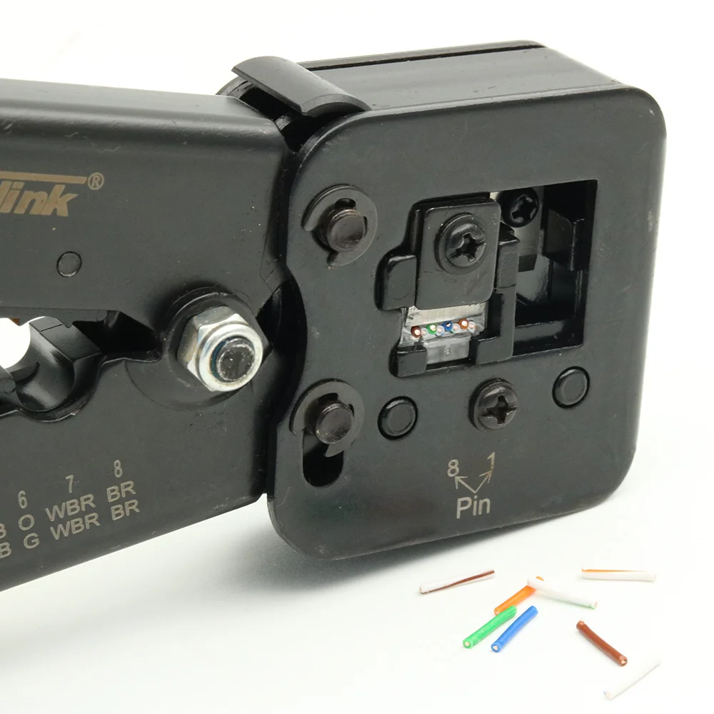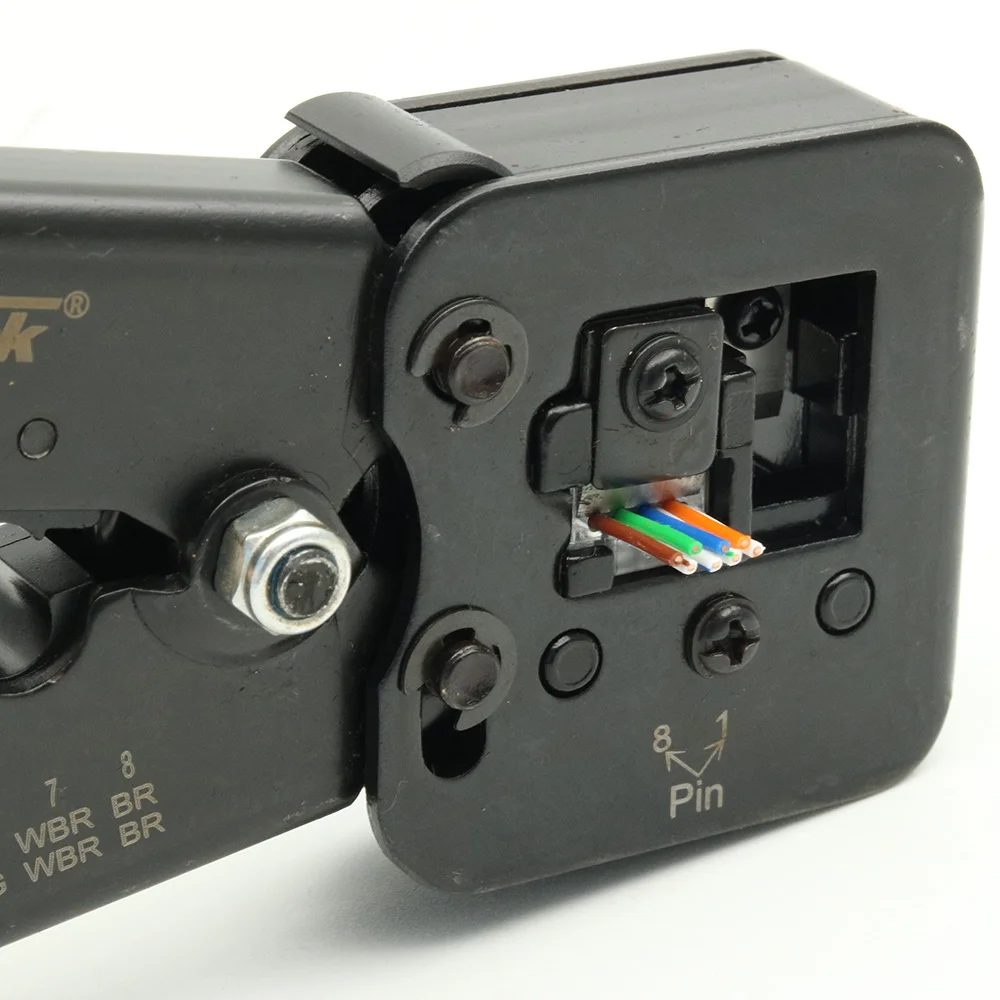 Estos alicates tienen una cuchilla en el puerto RJ45, puede cortar el cable adicional al presionar